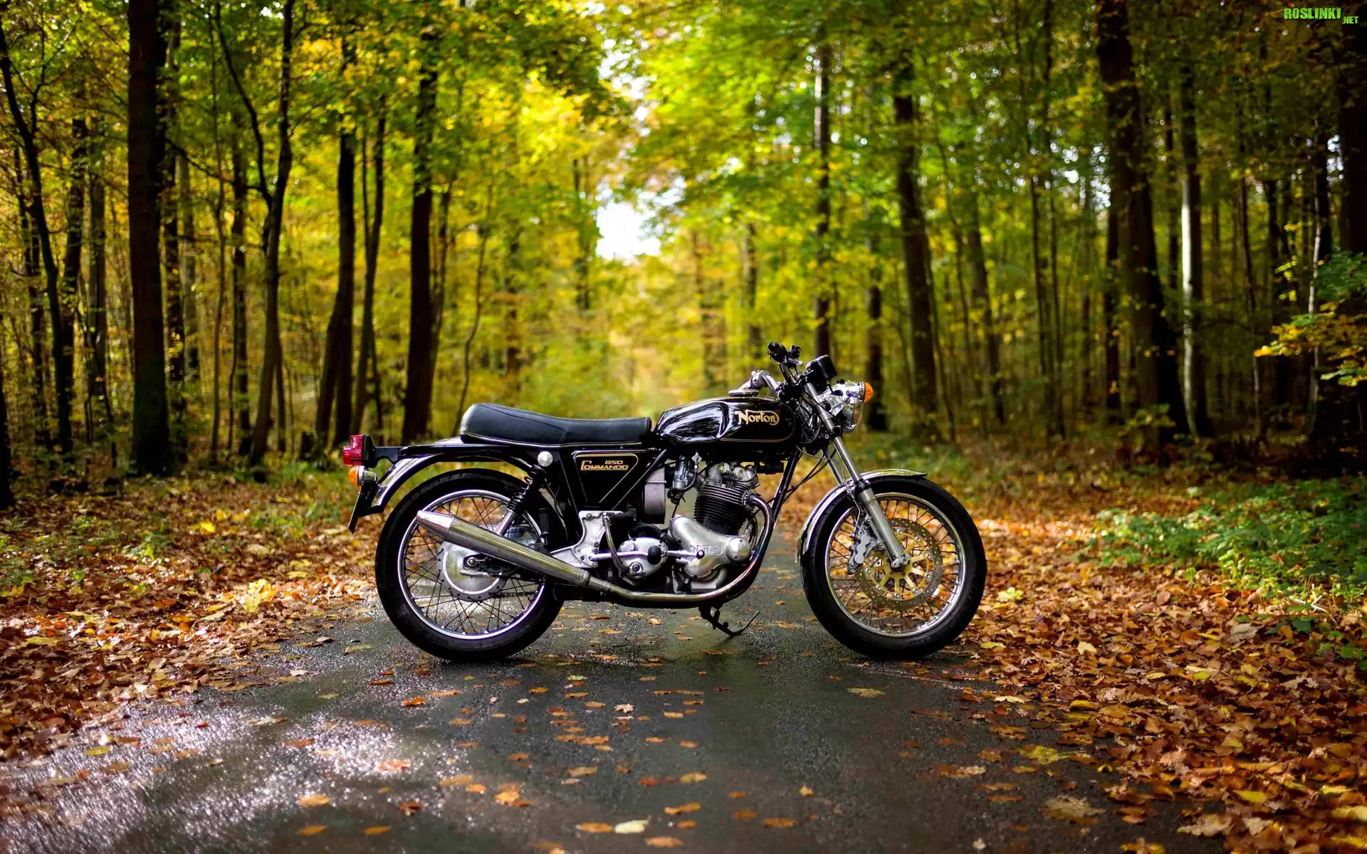 Rośliny: Motocykl, Las, Droga, Liście, Jesień