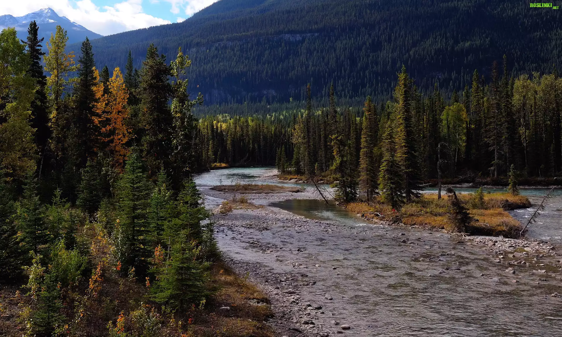 Rośliny: Kanada, Mount Robson Provincial Park, Rzeka, Drzewa, Góry