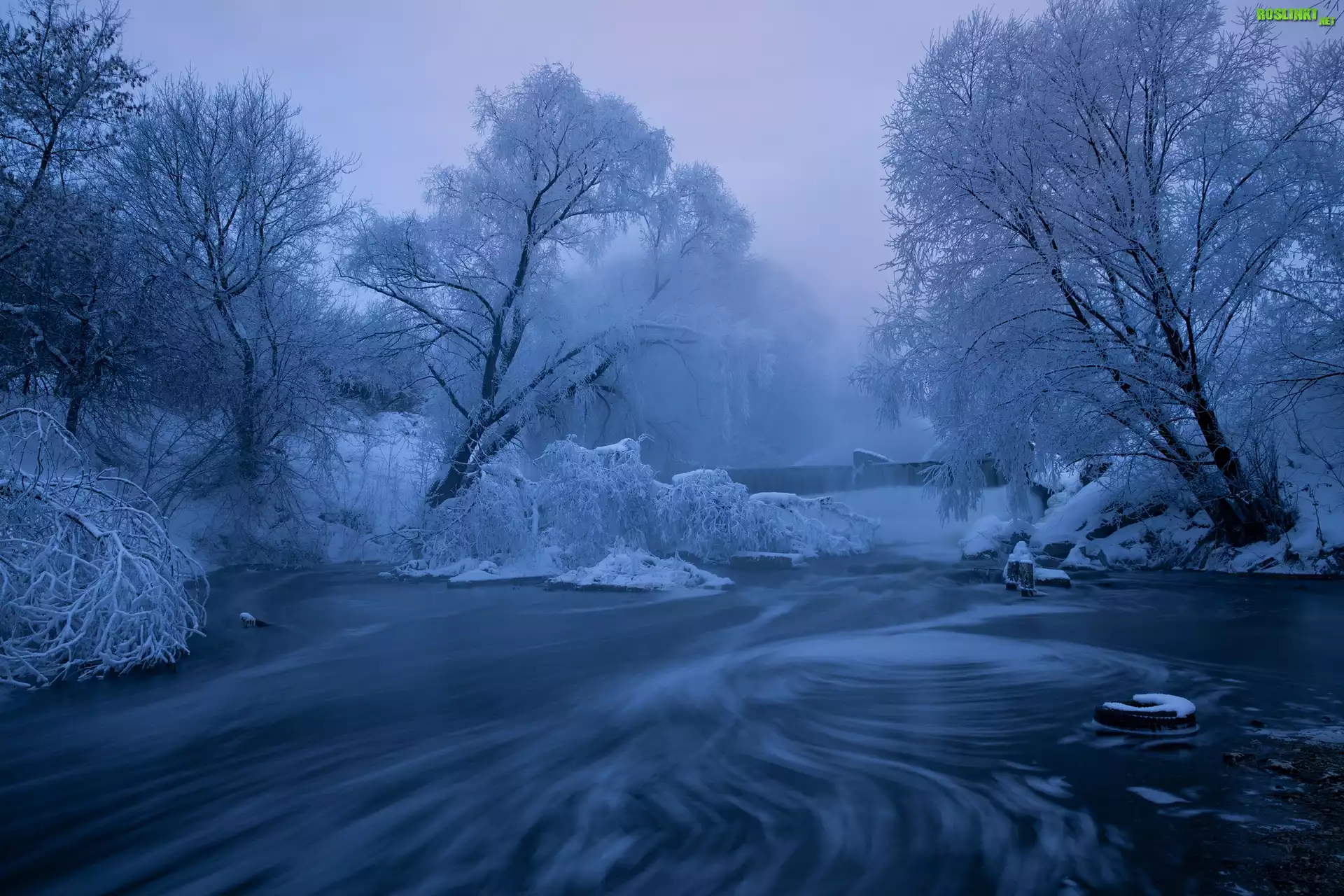 Rośliny: Zima, Mróz, Wodospad, Rzeka, Oszronione, Drzewa, Poranek