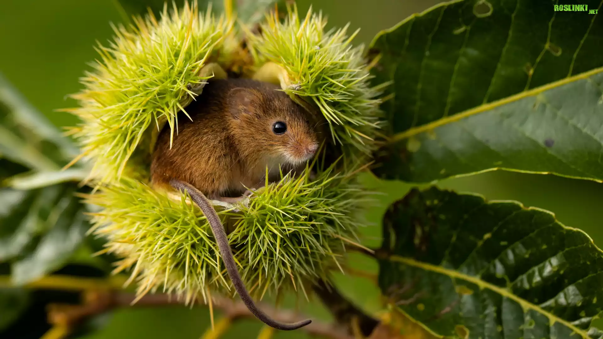 Myszka, Mysz, Kasztan jadalny, Łupina, Liście