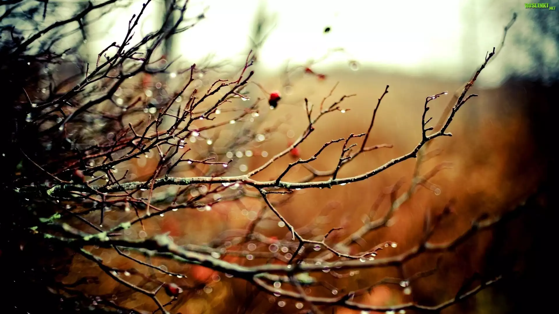 Rośliny: Nagie, Gałęzie, Krople, Deszczu, Rozmycie