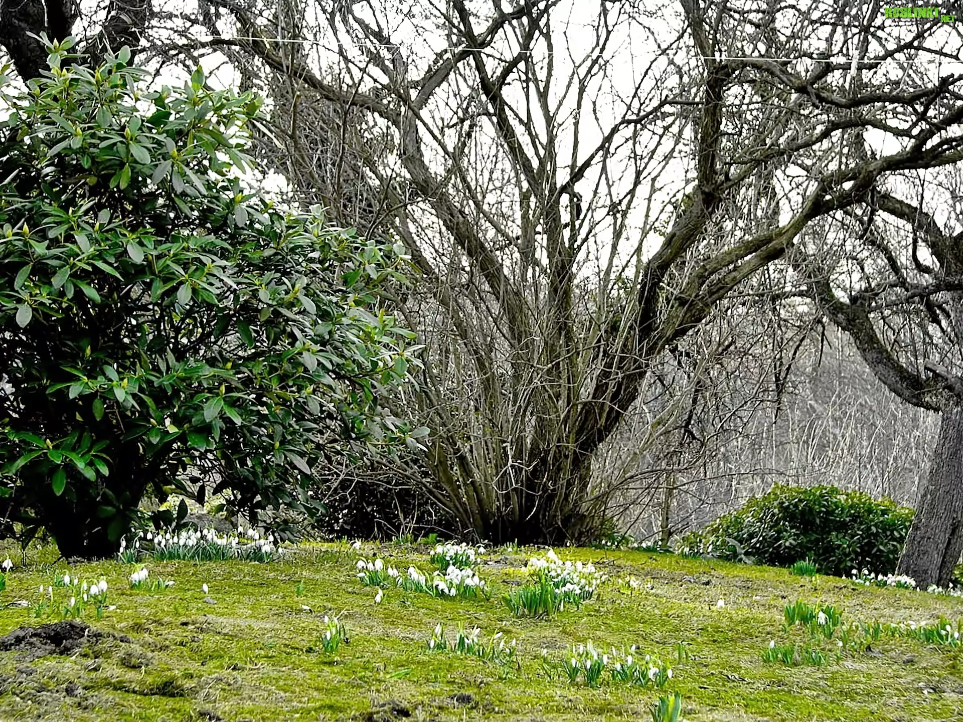 Rośliny: Nagie, Drzewa, Rododendron, Przebiśniegi, Rozmycie