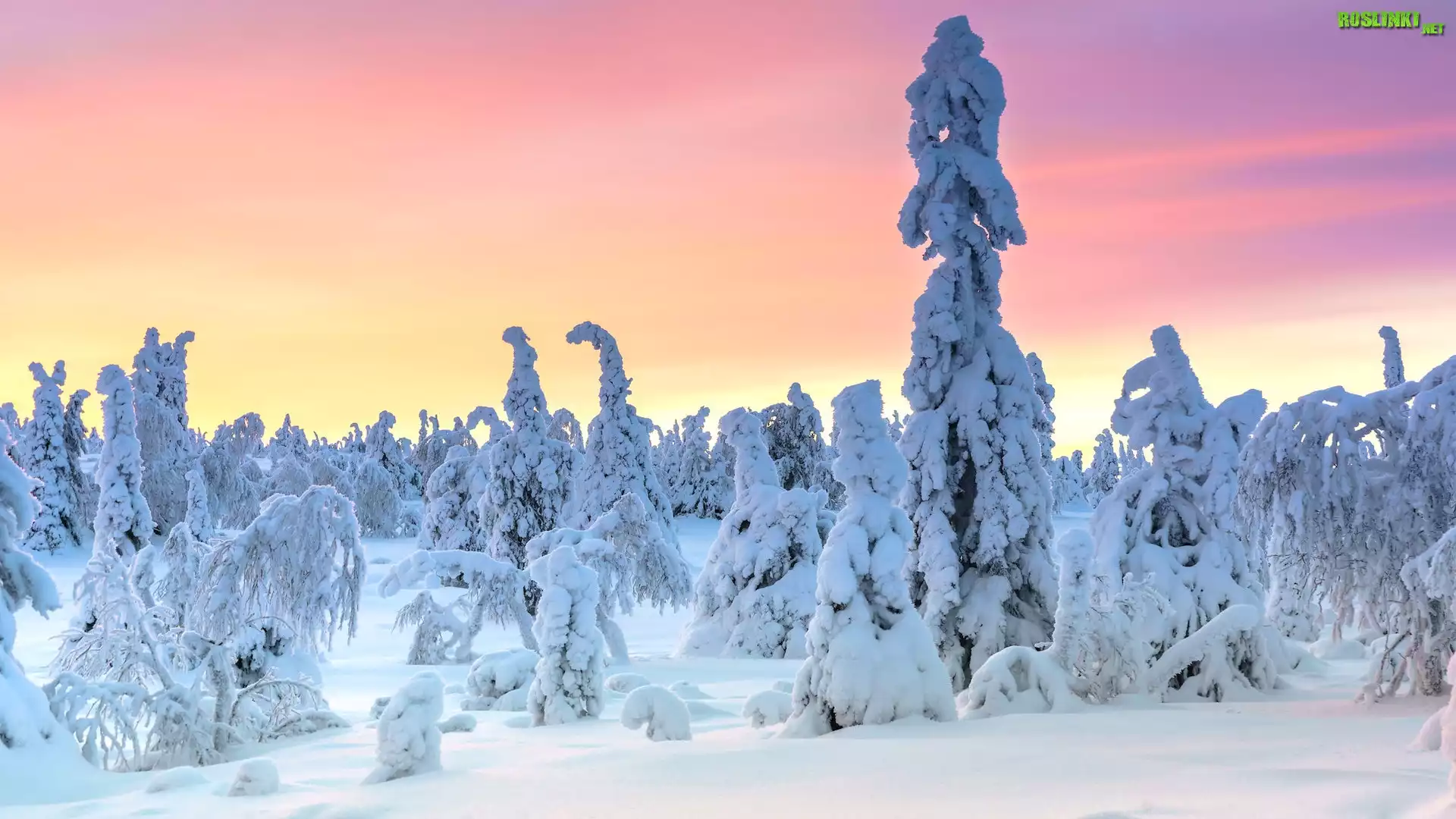 Rośliny: Park Narodowy Riisitunturi, Laponia, Finlandia, Zima, Drzewa, Ośnieżone