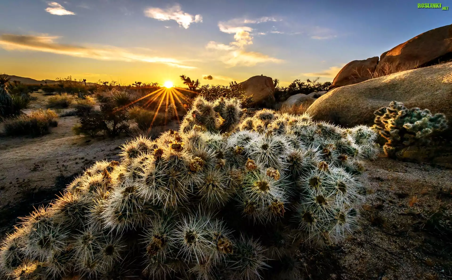 Rośliny: Park, Narodowy, Joshua Trees, Kalifornia, Kwitnące, Kaktusy