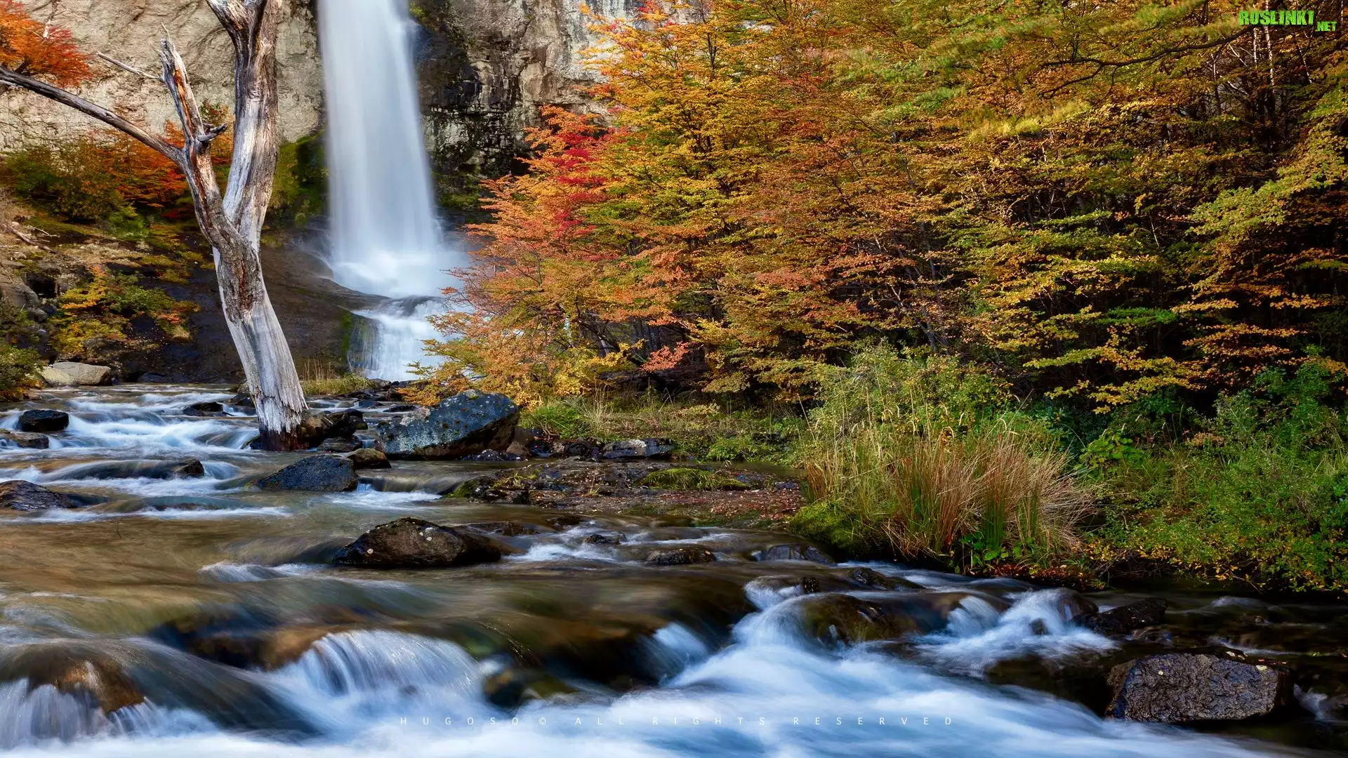 Argentyna, Patagonia, Skały, Wodospad, Salto do Chorrillo, Park Narodowy Los Glaciares, Rzeka, Jesień, Drzewa |