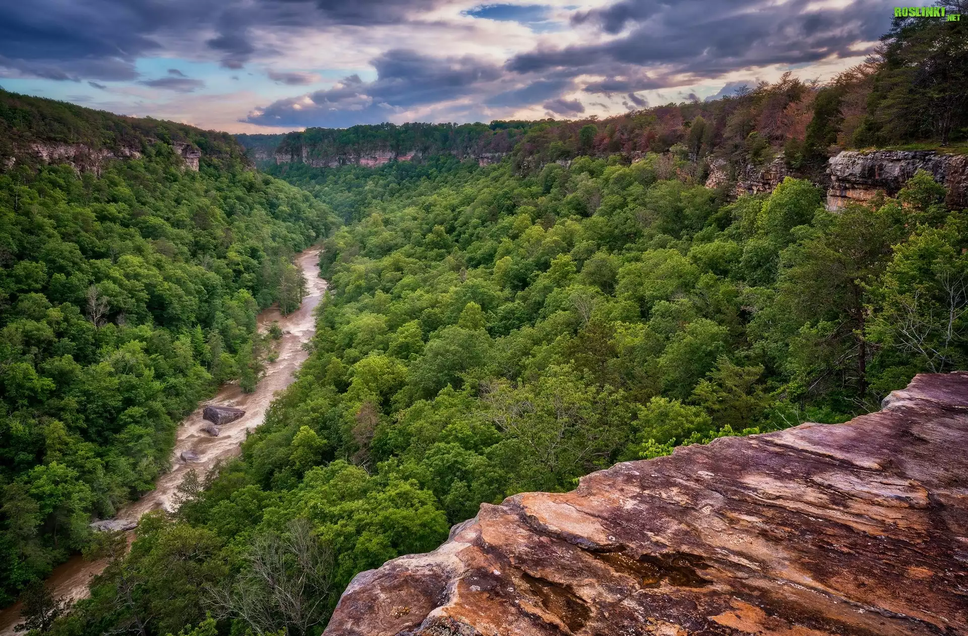 Stany Zjednoczone, Stan Alabama, Rezerwat Narodowy Little River Canyon, Rzeka, Drzewa, Skały