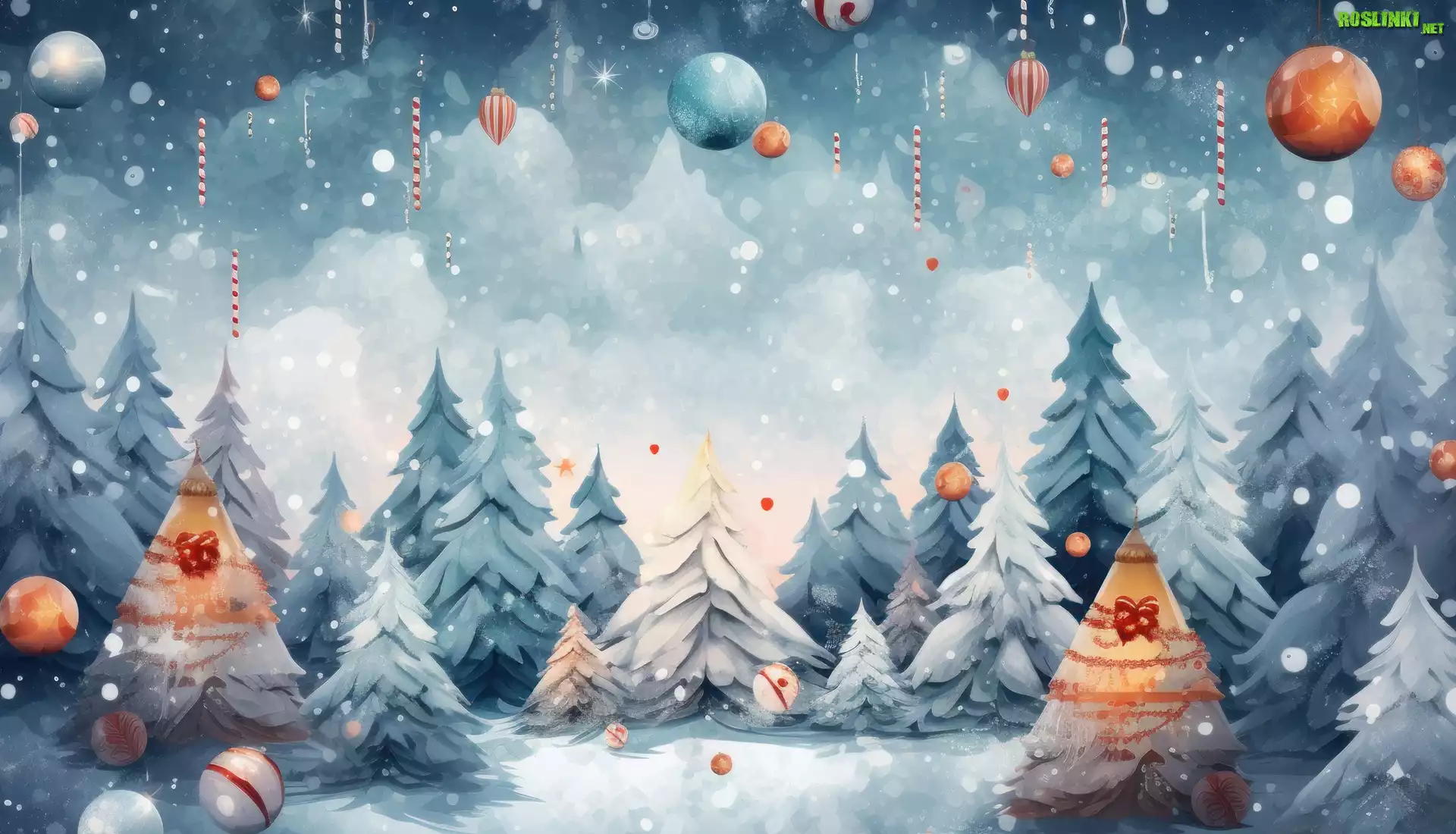 Rośliny: Boże Narodzenie, Drzewa, Bombki, Grafika