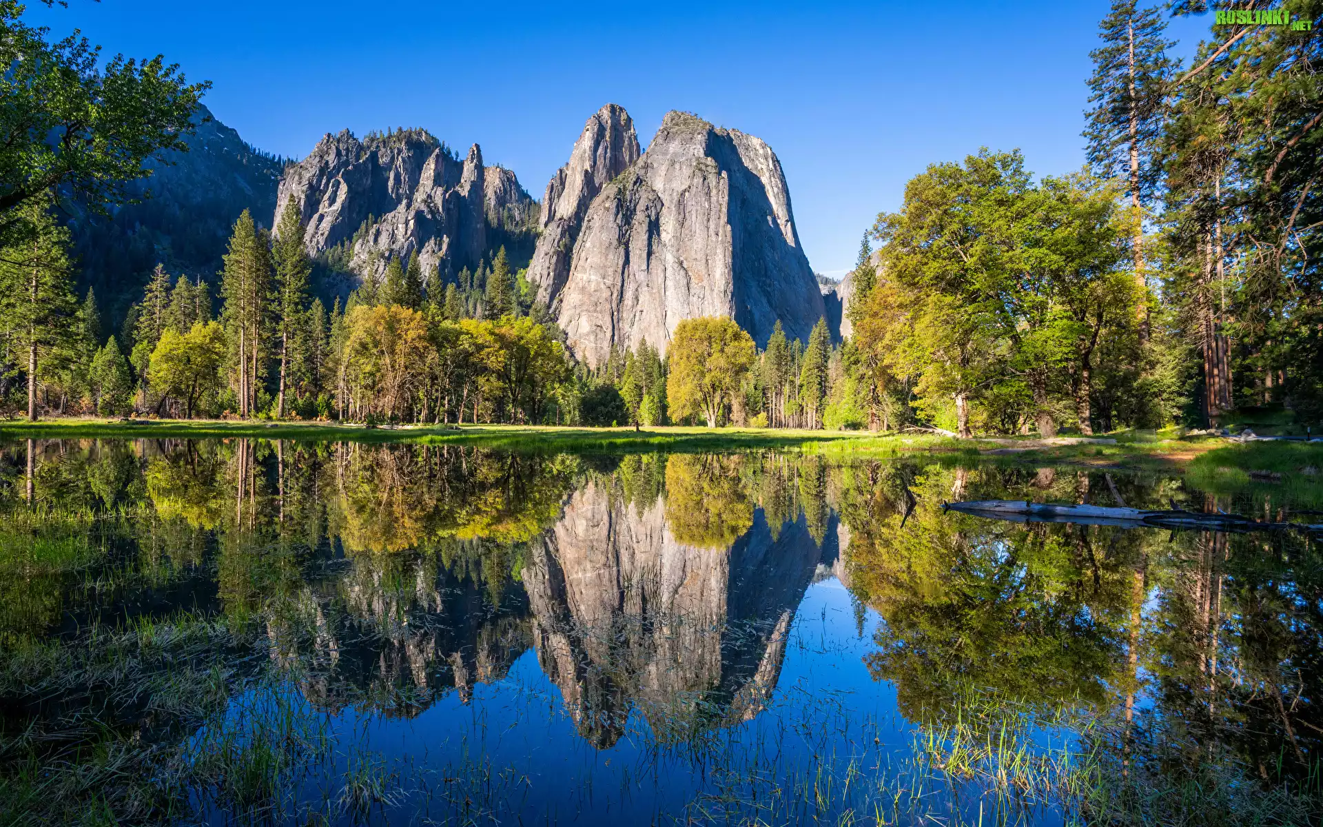 Stany Zjednoczone, Kalifornia, Park Narodowy Yosemite, Góry Sierra Nevada, Rzeka, Merced River, Drzewa, Odbicie |