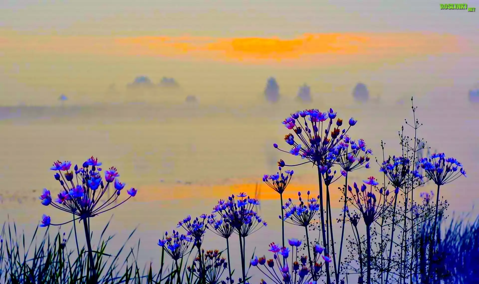 Rośliny: Niebieskie, Kwiatostany, Trawa, Zachód Słońca, Koper