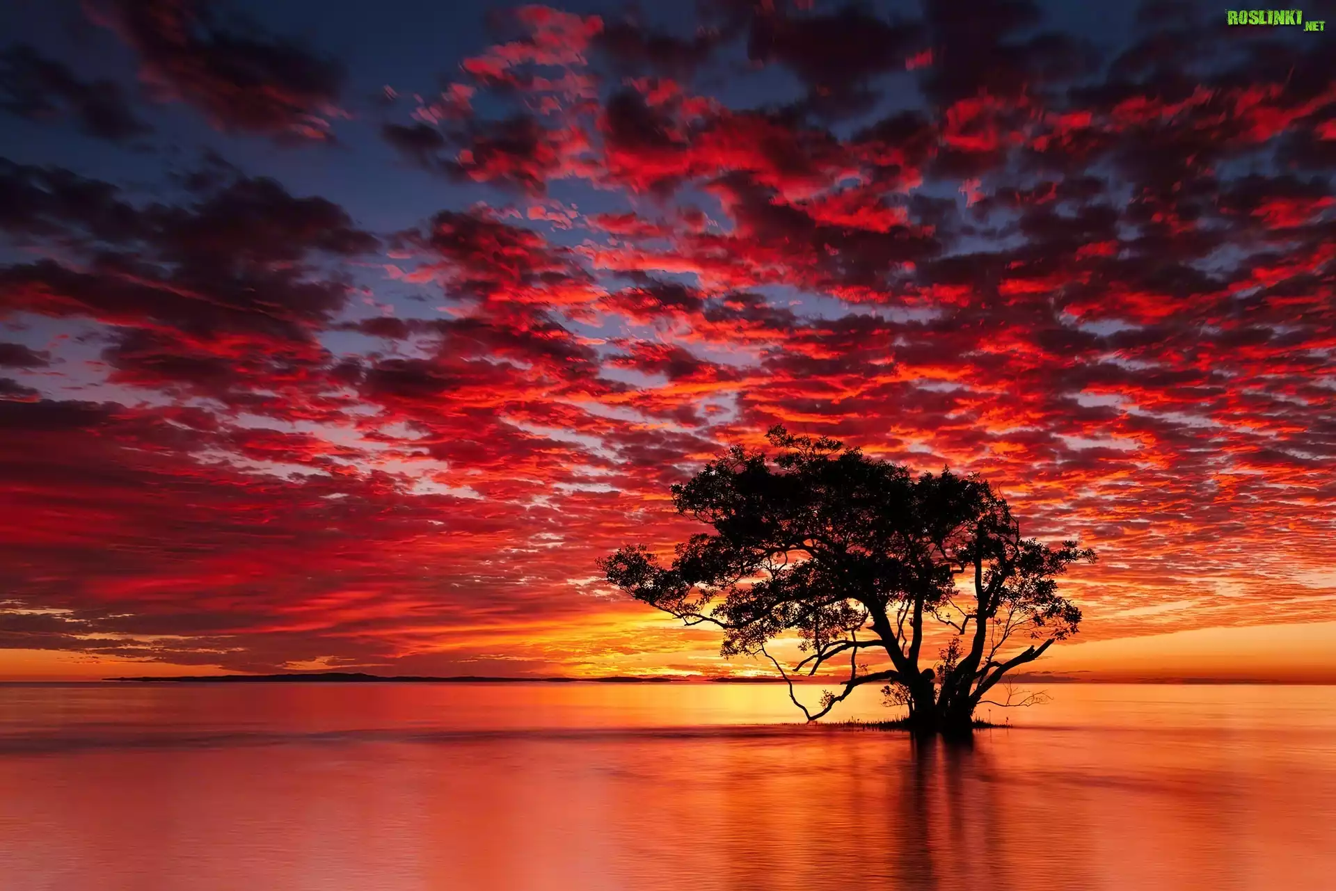 Rośliny: Niebo, Zachód, Słońca, Drzewo, Jezioro