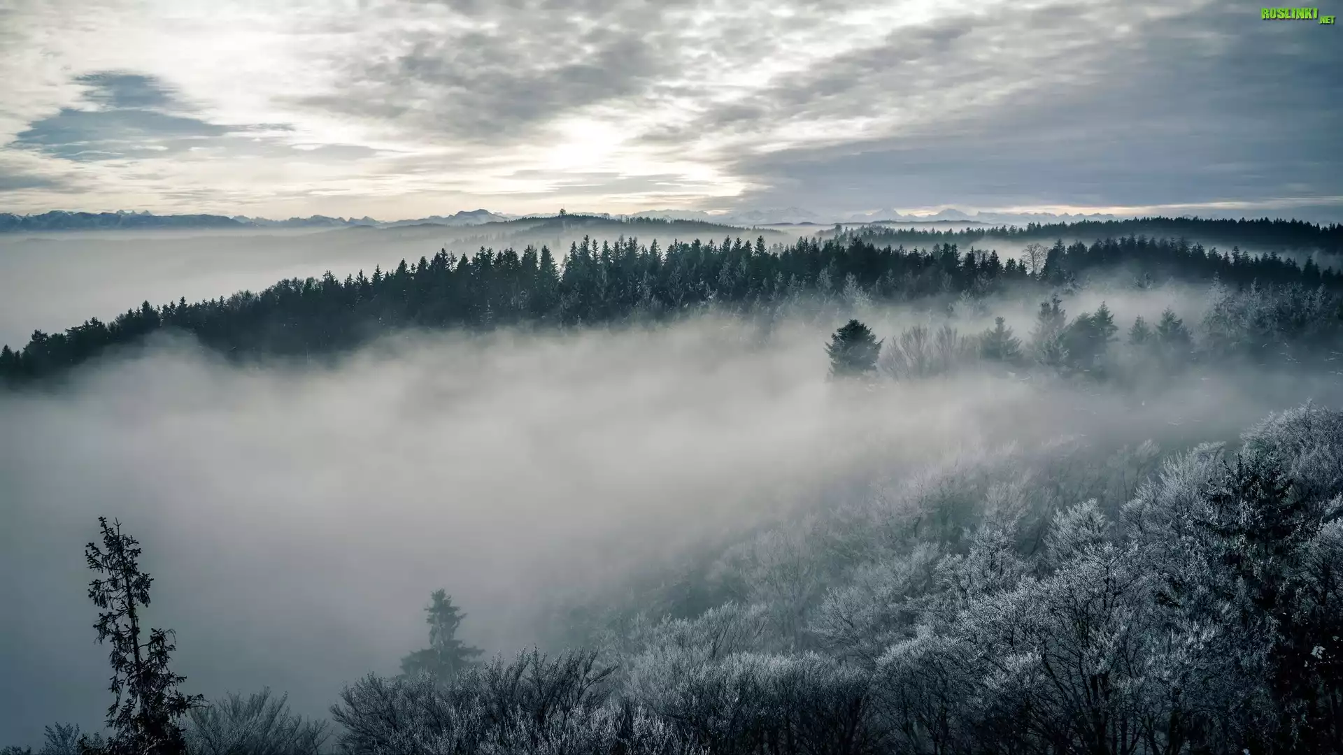 Rośliny: Las, Mgła, Drzewa, Niebo