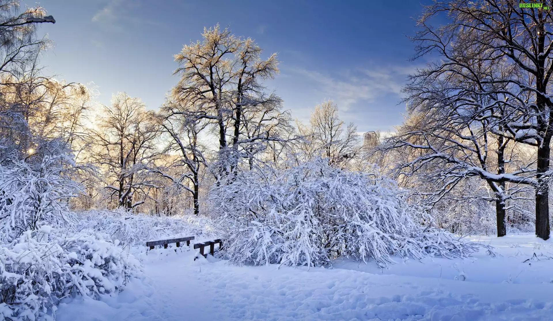 Rośliny: Niebo, Drzewa, Śnieg, Zima