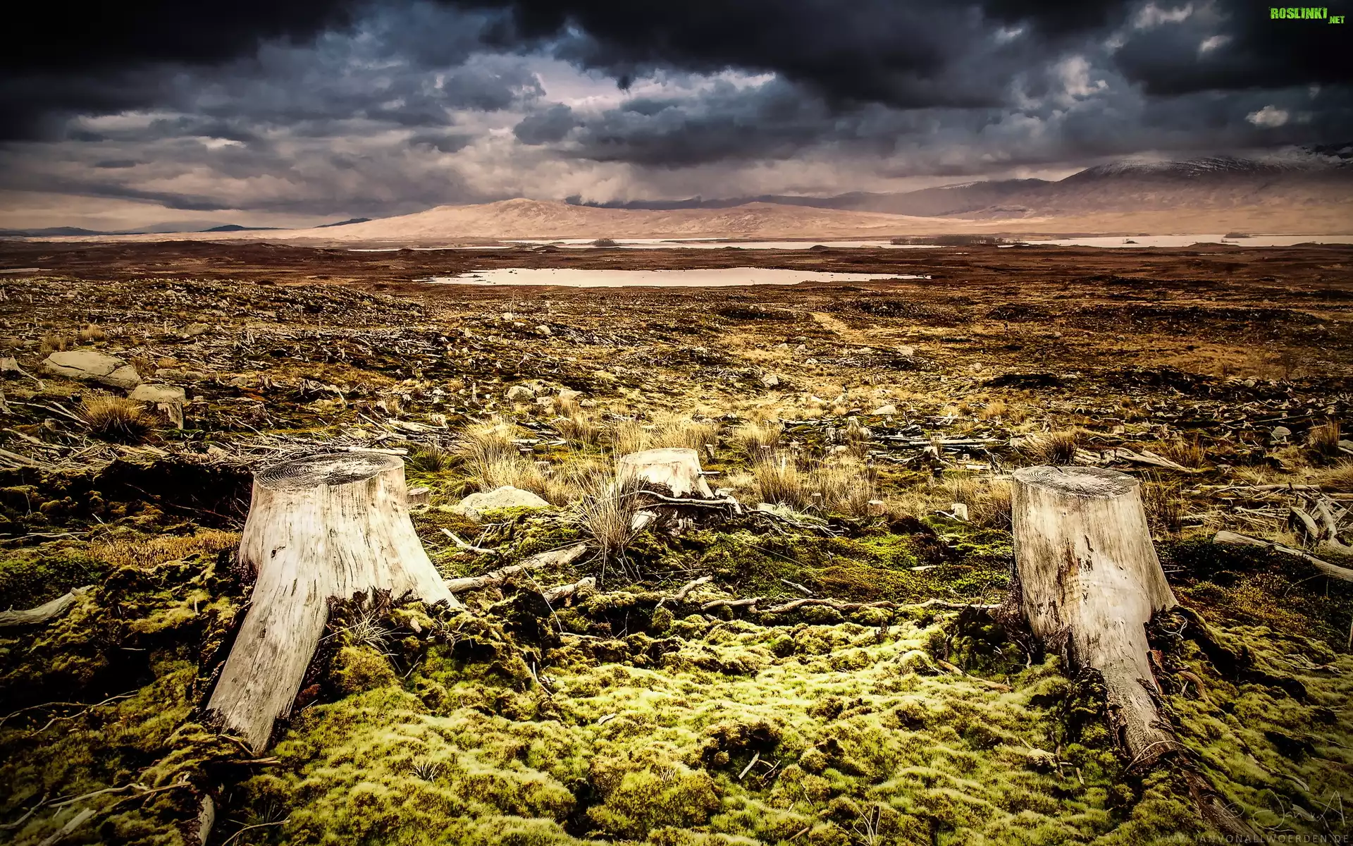 Rośliny: Niebo, Chmury, Pnie, Drzew