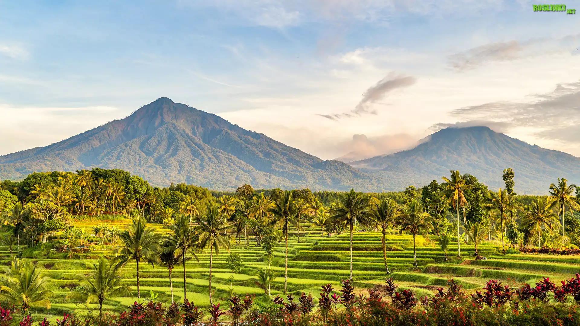 Rośliny: Góry, Niebo, Pola, Drzewa, Palmy