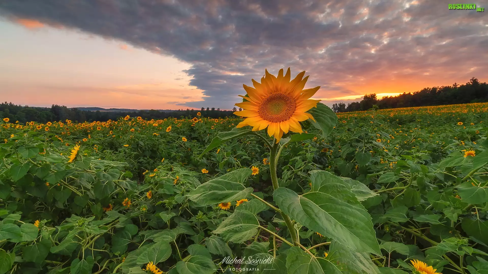 Rośliny: Niebo, Chmury, Pole, Słoneczniki