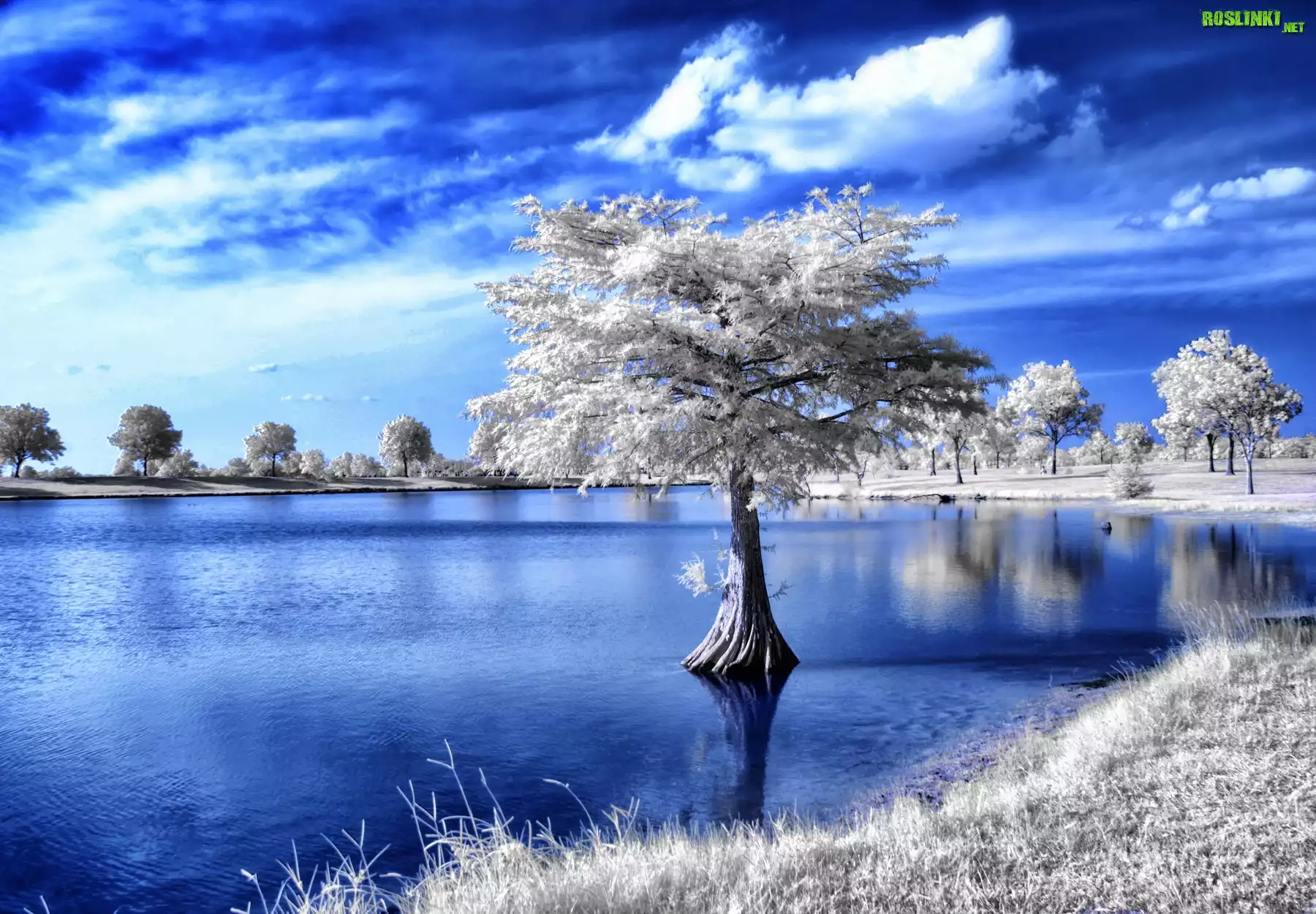 Rośliny: Niebo, Drzewa, Rzeka, Zima
