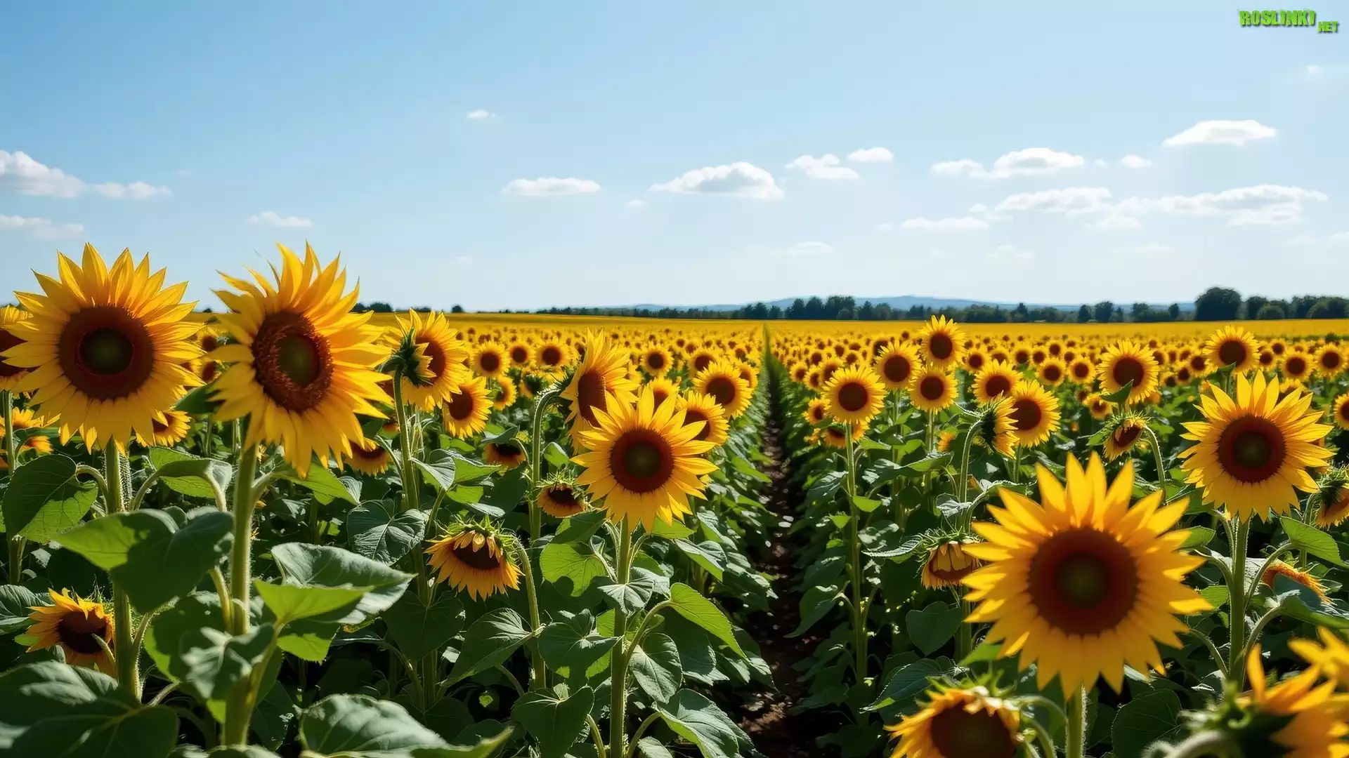 Rośliny: Słoneczniki, Pole, Drzewa, Niebo