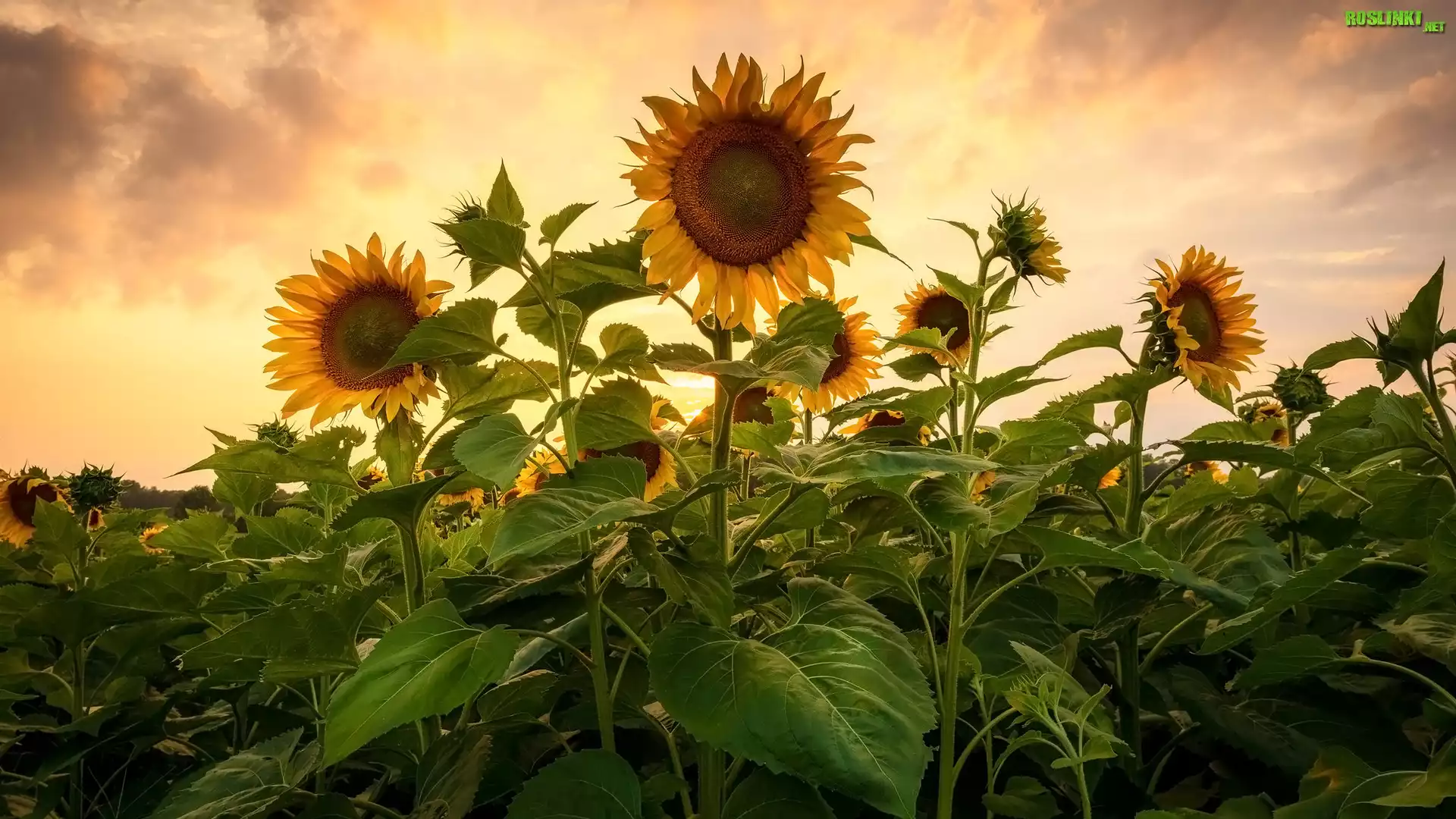 Rośliny: Słoneczniki, Kwiaty, Liście, Niebo