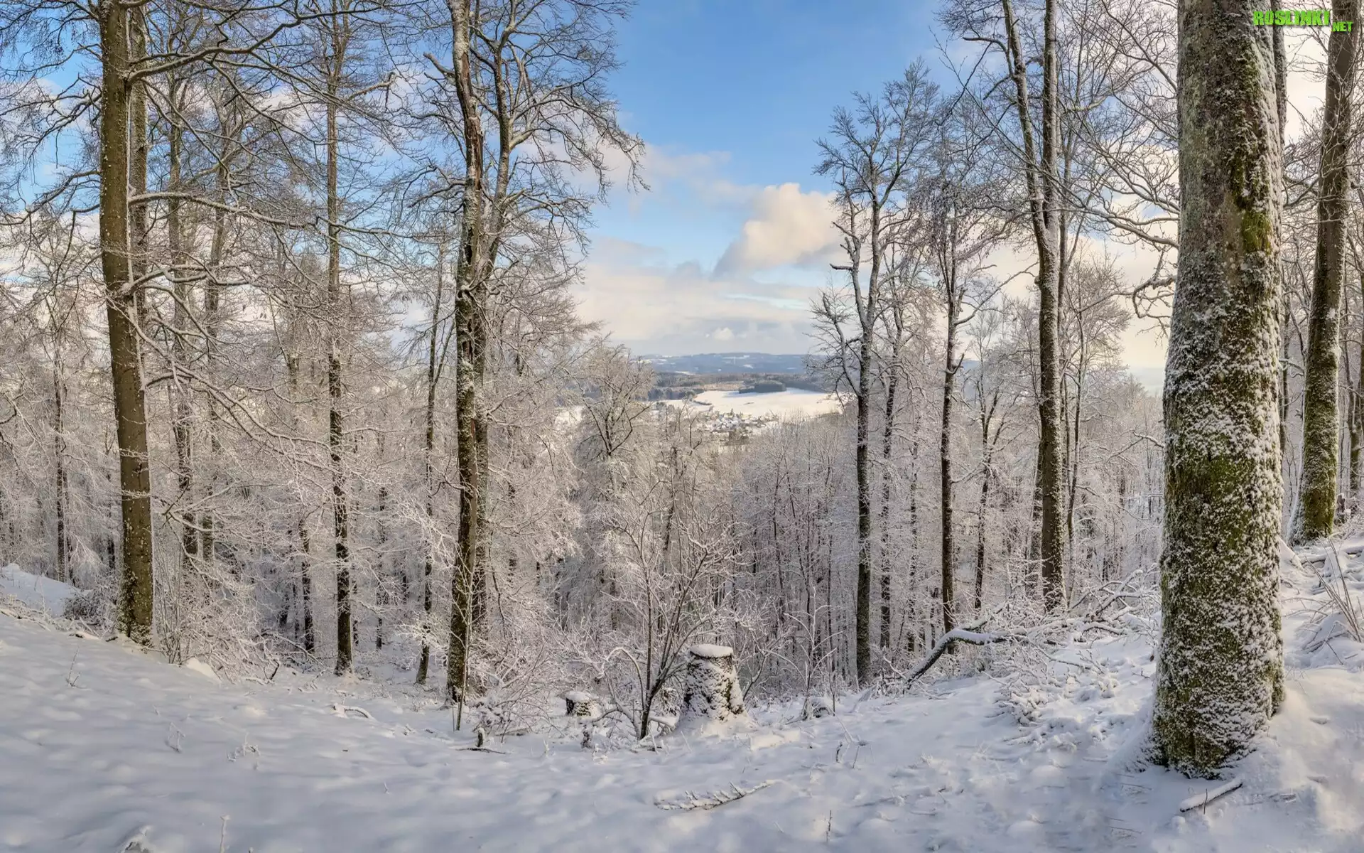 Rośliny: Zima, Las, Drzewa, Niebo