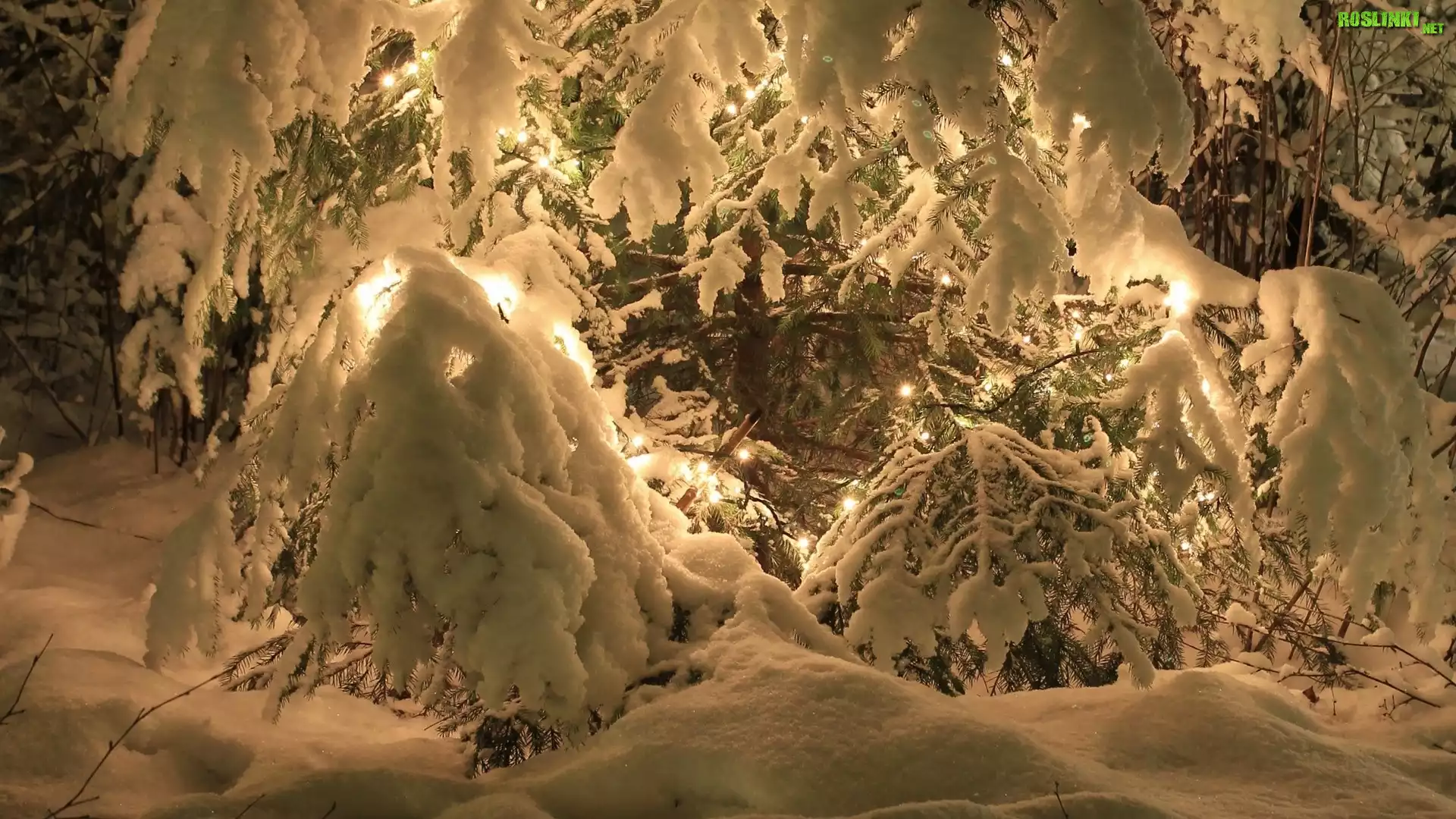 Rośliny: Choinka, Śnieg, Światełka