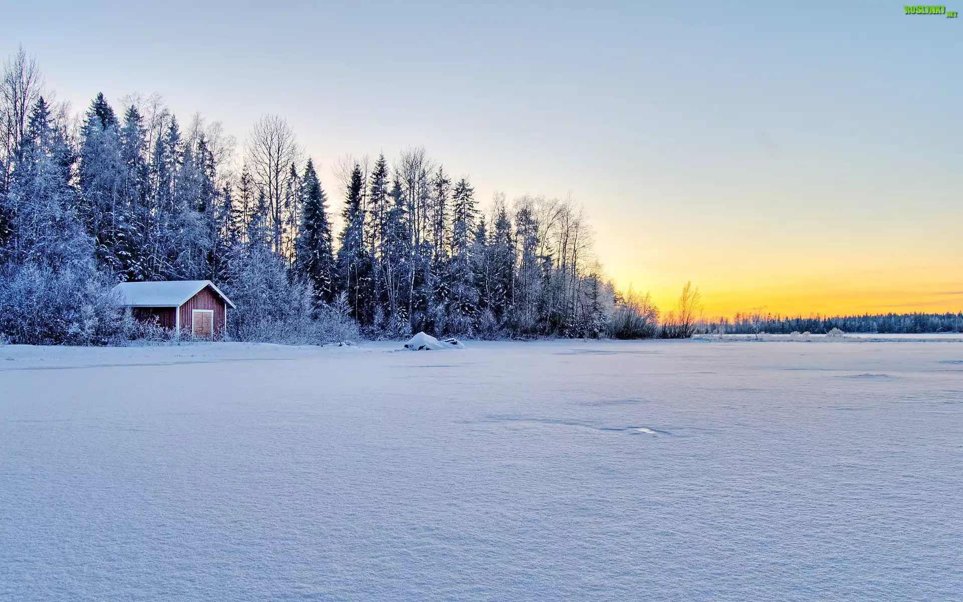 Rośliny: Świt, Dom, Śnieg, Drzewa
