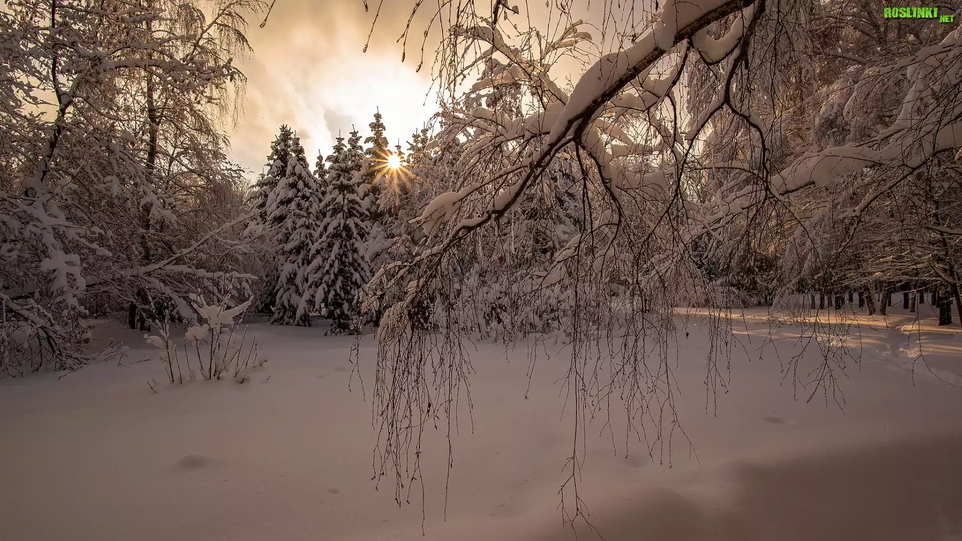 Rośliny: Zima, Śnieg, Las, Drzewa, Promienie słońca, Ośnieżone, Gałęzie