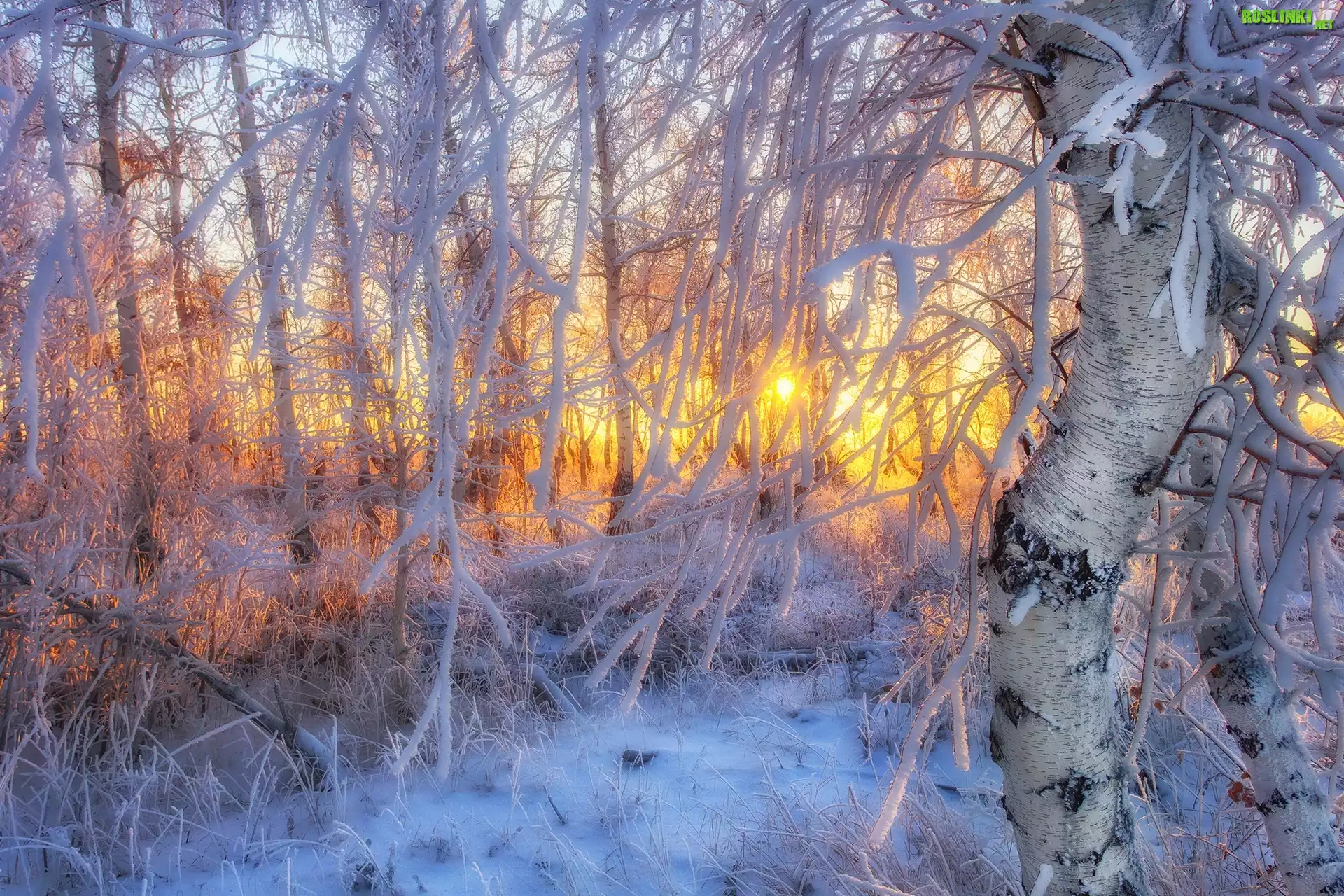 Rośliny: Zima, Śnieg, Drzewa, Las, Ośnieżone, Gałęzie, Słońce