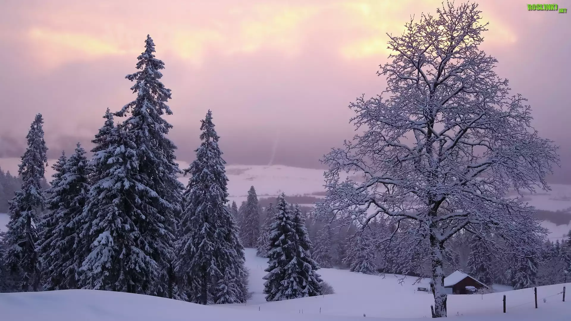 Rośliny: Zima, Śnieg, Drzewa, Świerki, Domek, Neuchatel, Szwajcaria