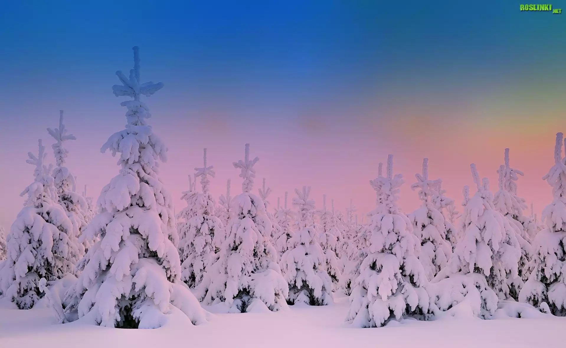 Rośliny: Zima, Śnieg, Świerki