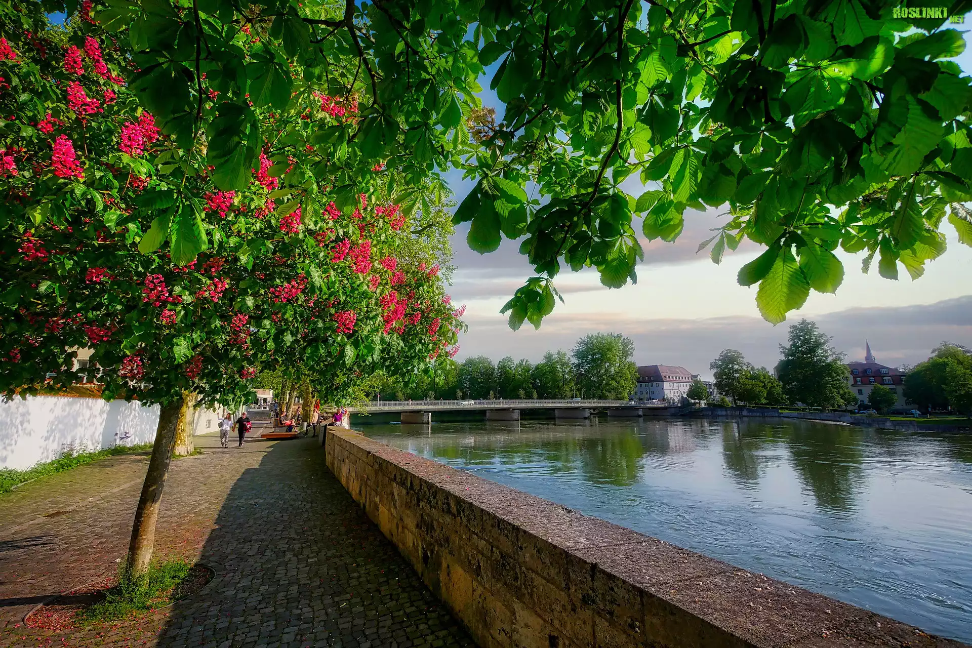 Rośliny: Kasztanowiec, Droga, Bulwar, Most, Rzeka Lech, Landsberg, Niemcy
