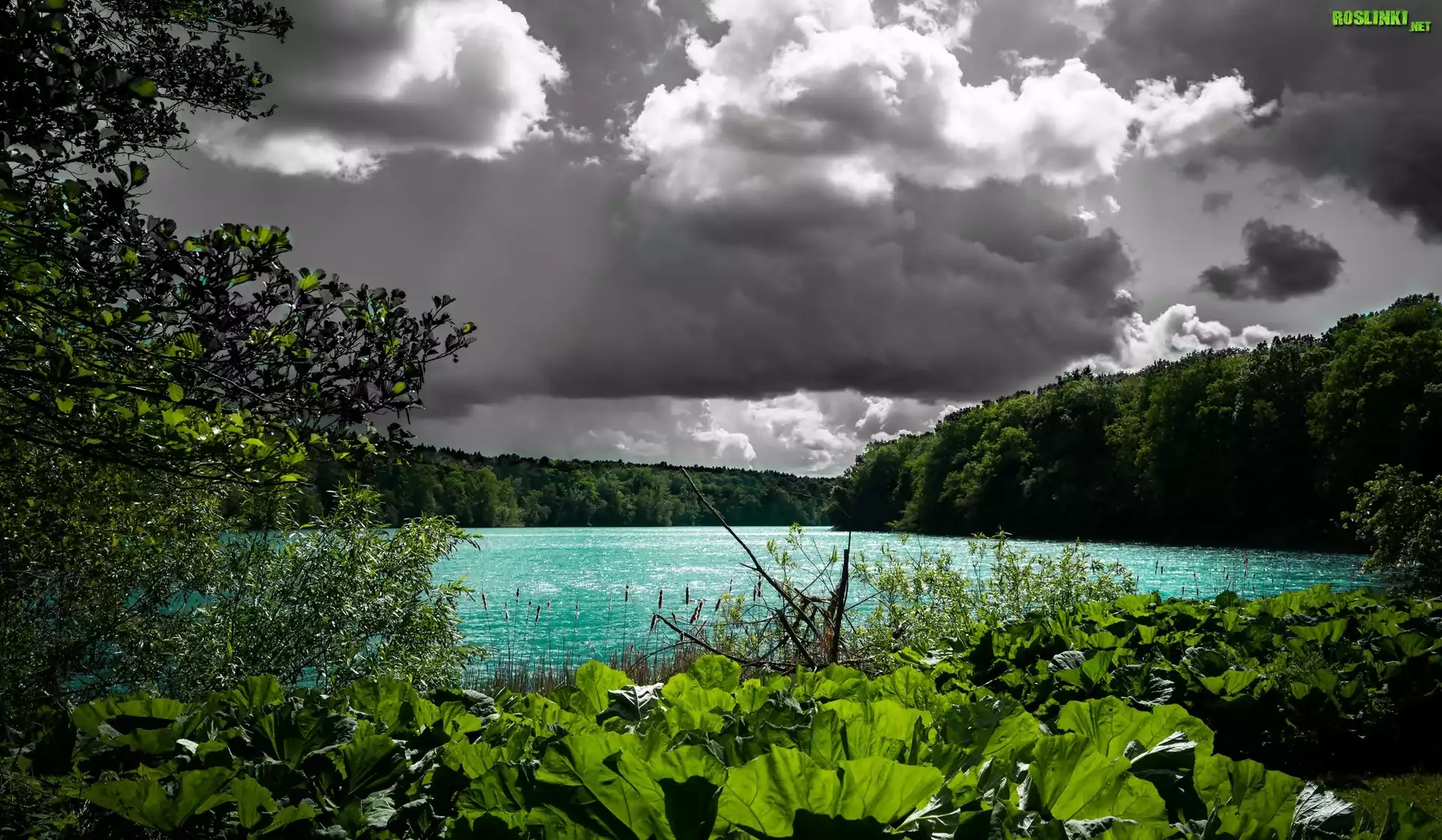 Rośliny: Niemcy, Brandenburg, Jezioro, Chmury, Drzewa