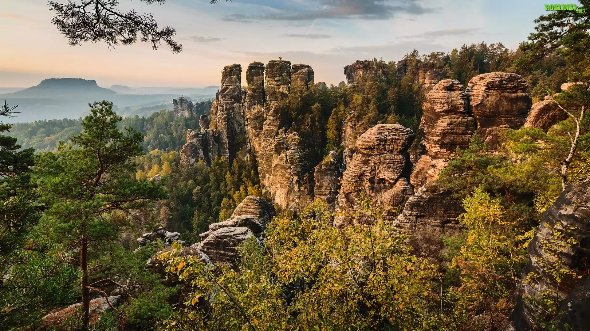 Rośliny: Góry Połabskie, Skały, Bastei, Drzewa, Park Narodowy Saskiej Szwajcarii, Niemcy