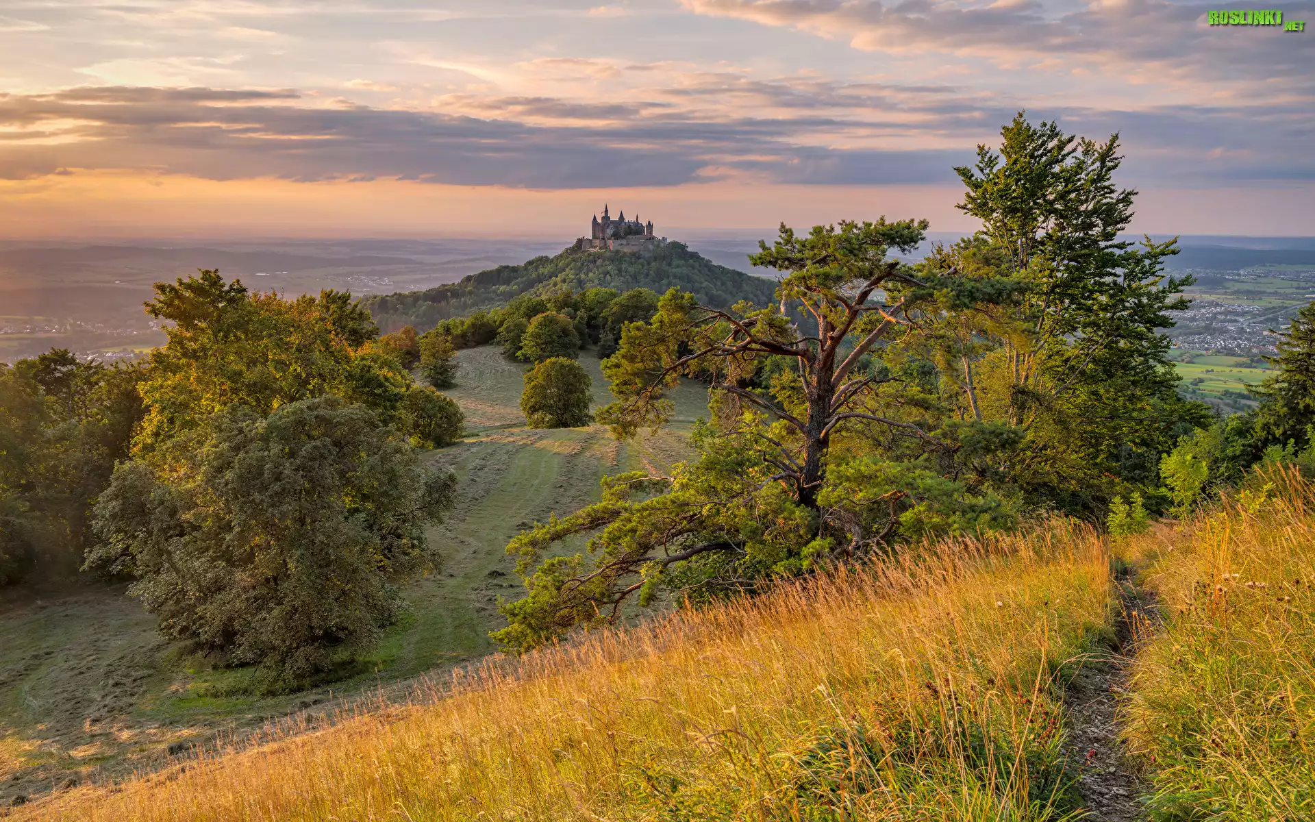 Rośliny: Góry, Góra Hohenzollern, Zamek Hohenzollern, Drzewa, Trawa, Niemcy