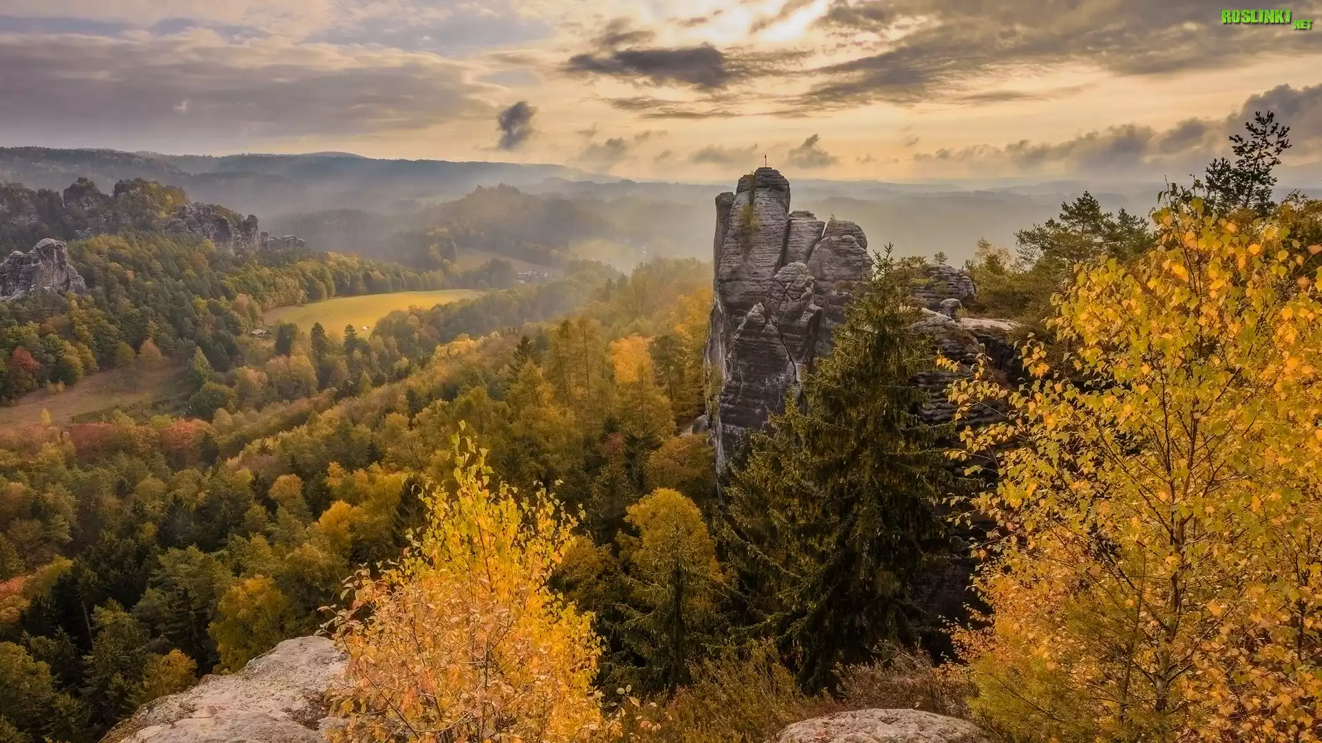 Rośliny: Jesień, Park Narodowy Saskiej Szwajcarii, Skały, Drzewa, Góry Połabskie, Niemcy