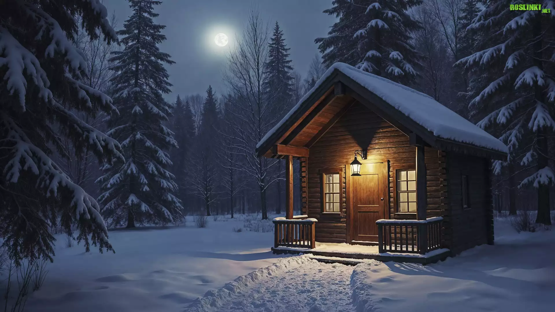 Rośliny: Zima, Dom, Las, Noc, Księżyc, Drzewa