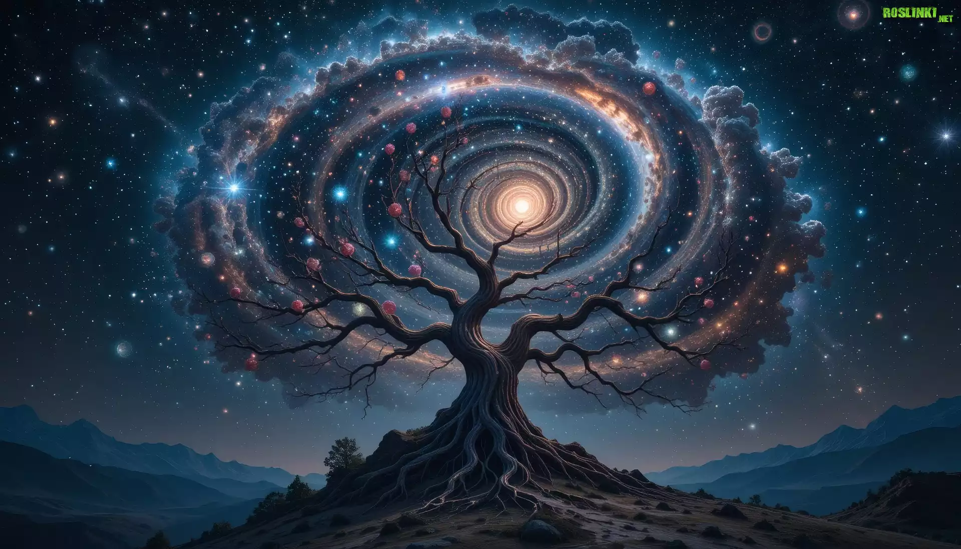 Rośliny: Krajobraz, Noc, Gwiazdy, Galaktyka, Drzewo