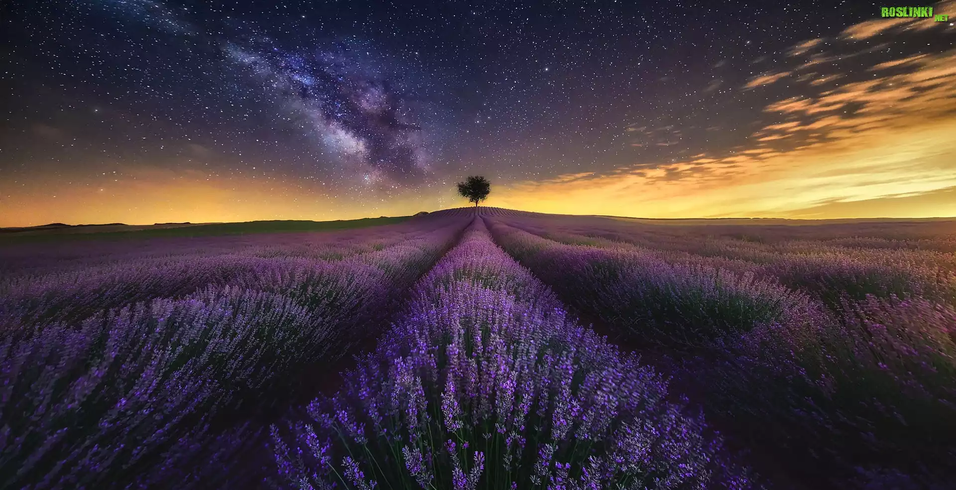 Rośliny: Noc, Lawendowe, Pole, Drzewo