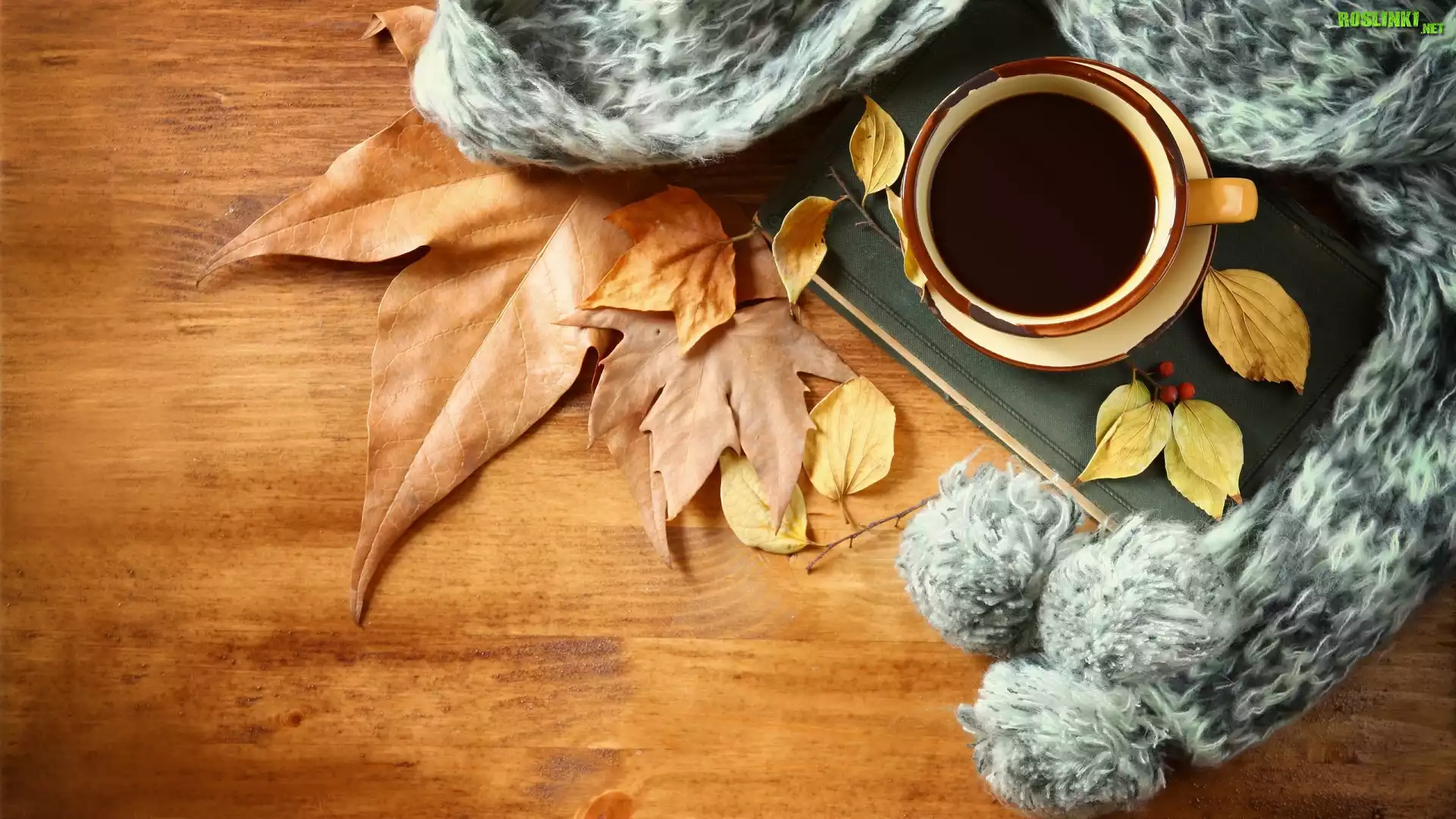 Notes, Szalik, Liście, Filiżanka, Kawa