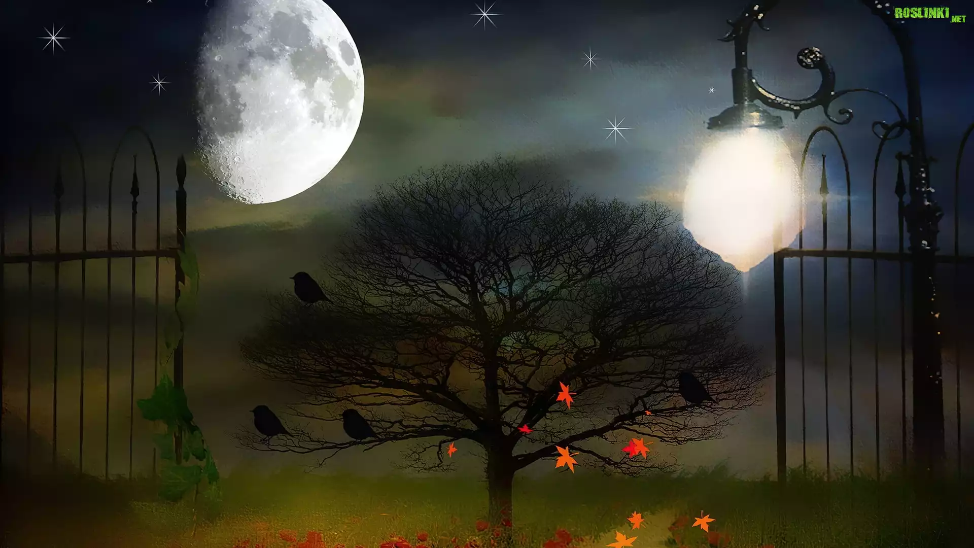 Rośliny: Obraz, Brama, Drzewo, Liście, Księżyc
