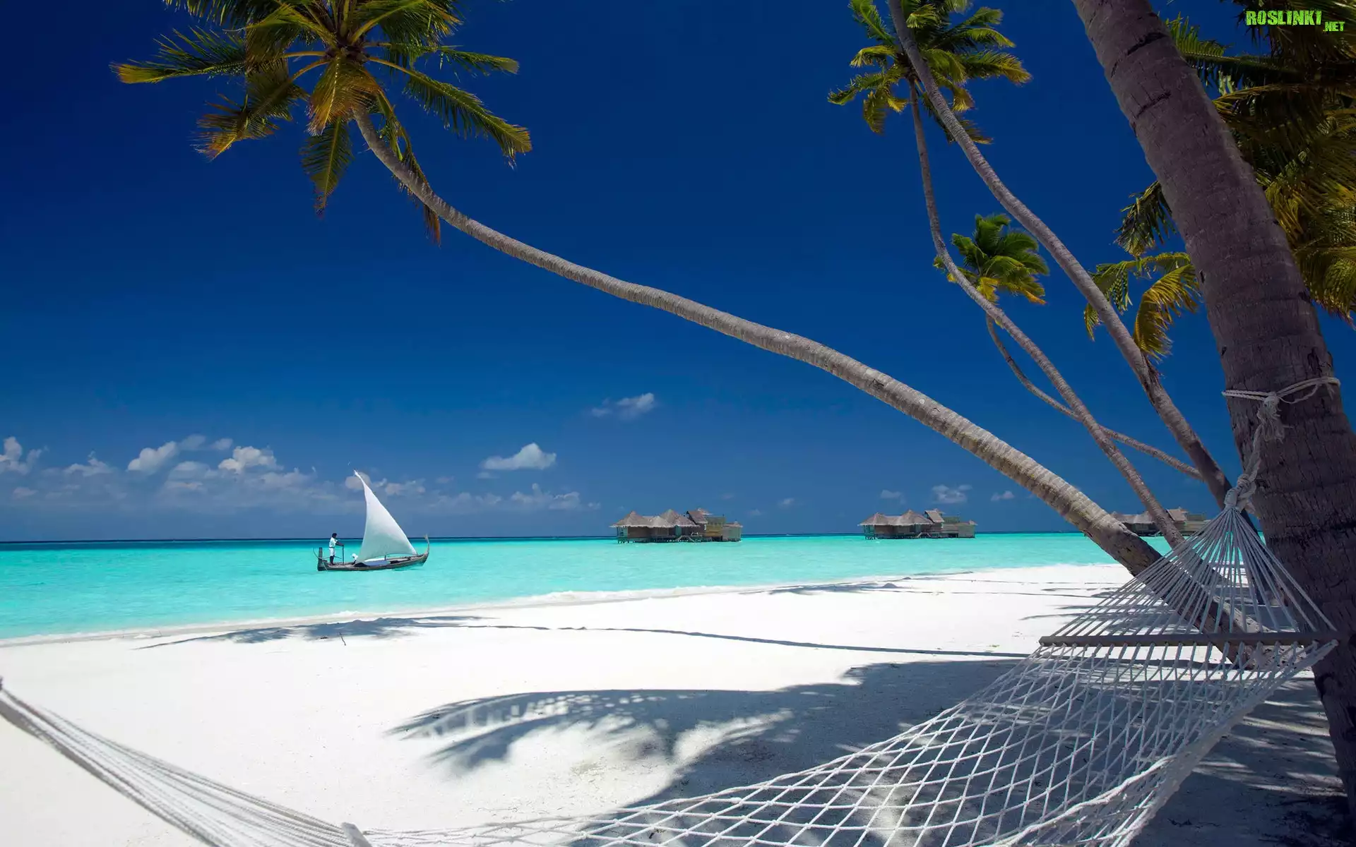 Rośliny: Ocean, Plaża, Palmy, Hamak, Domki, Żaglówka