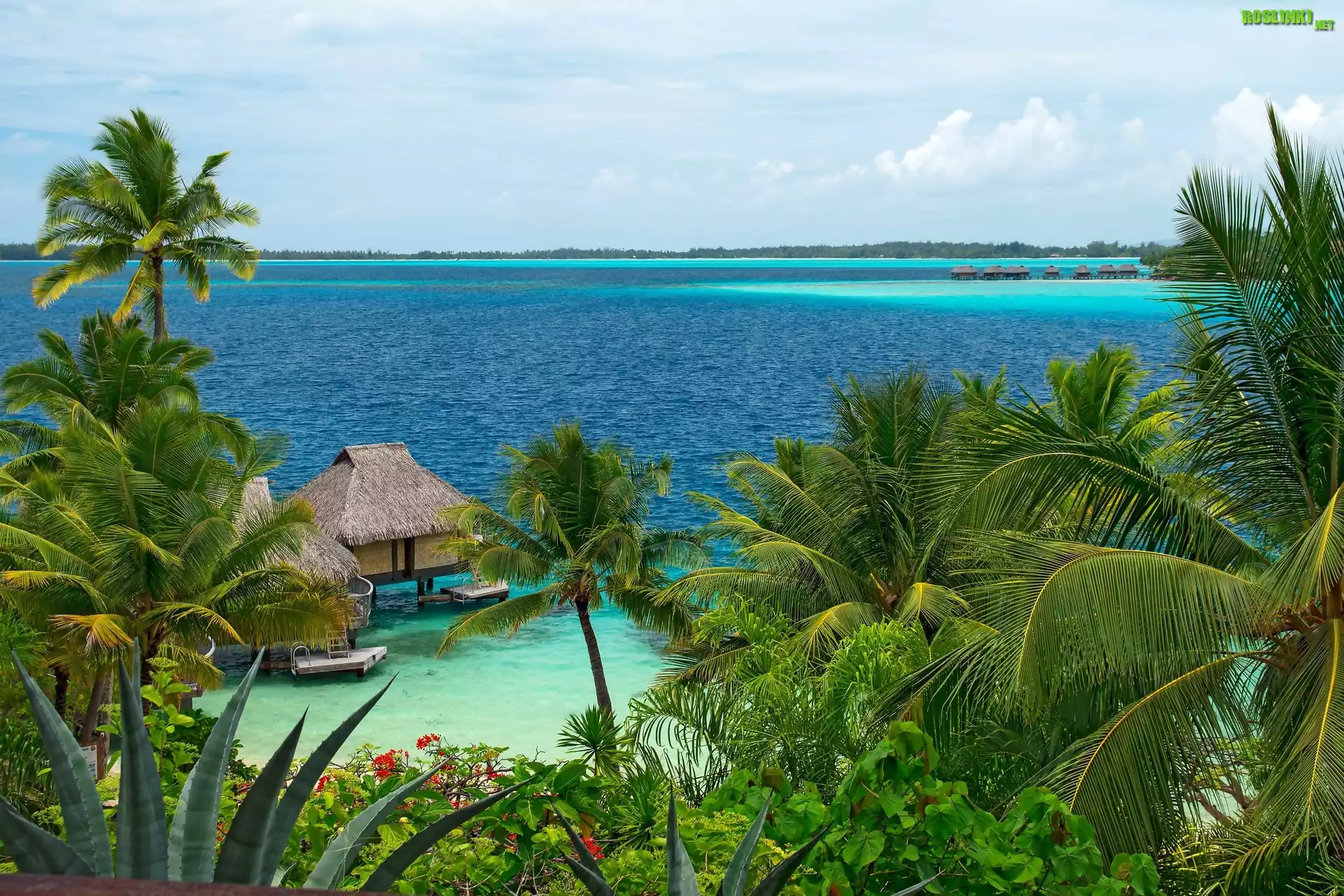 Rośliny: Ocean, Palmy, Domki, Tropiki