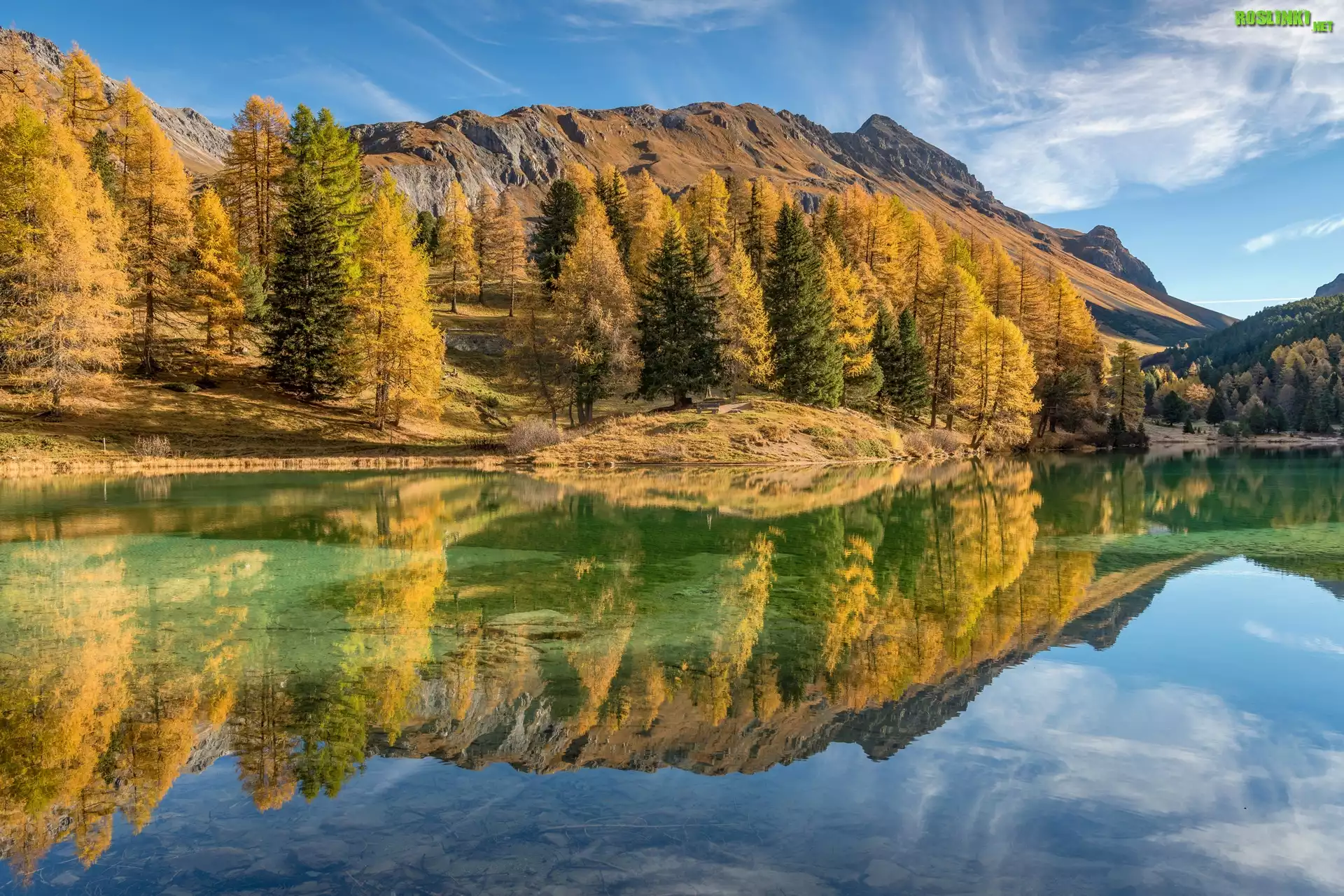 Rośliny: Szwajcaria, Palpuogna Lake, Jezioro, Odbicie, Drzewa, Góry, Alpy, Jesień