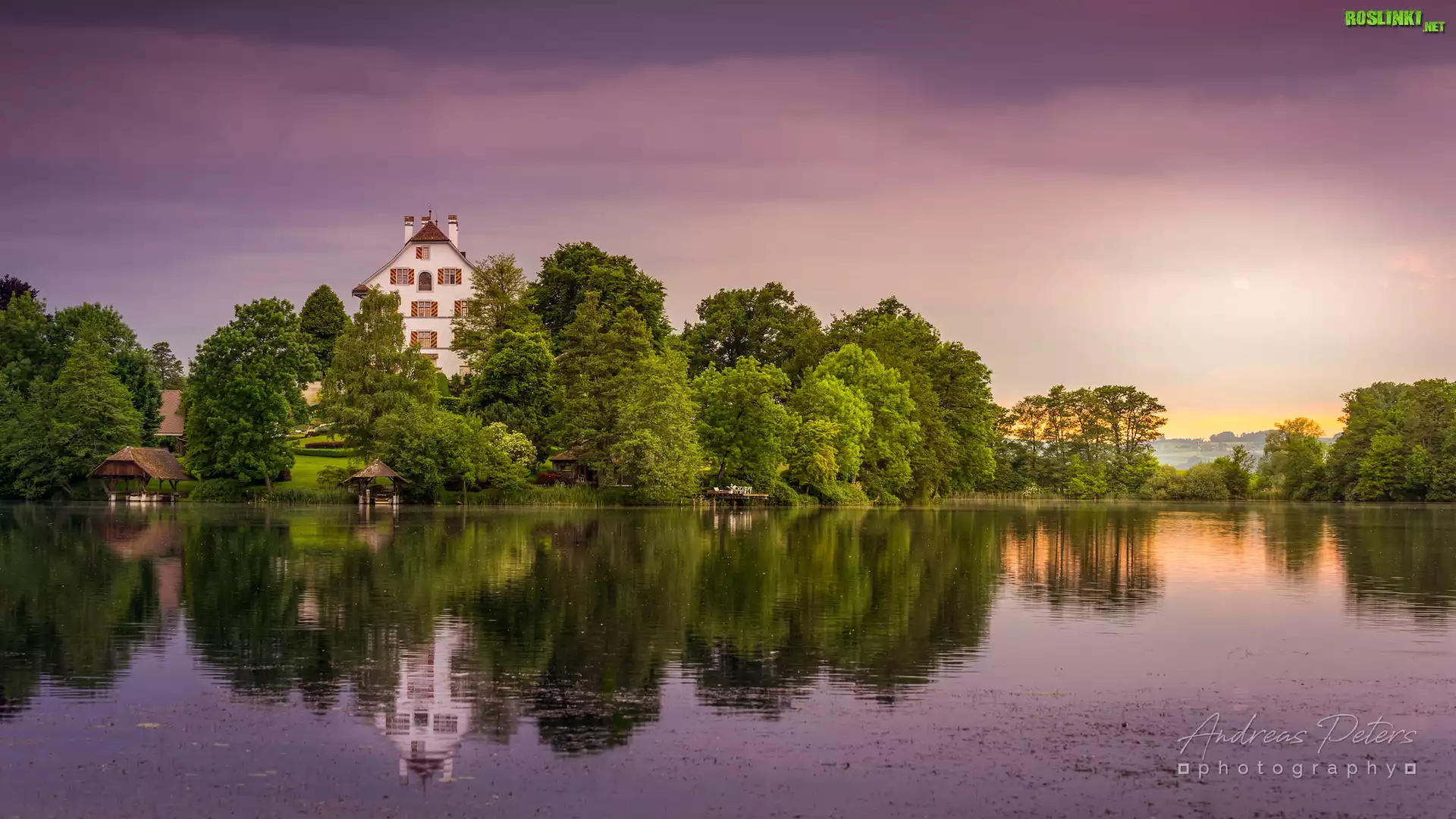 Rośliny: Jezioro, Drzewa, Dom, Odbicie