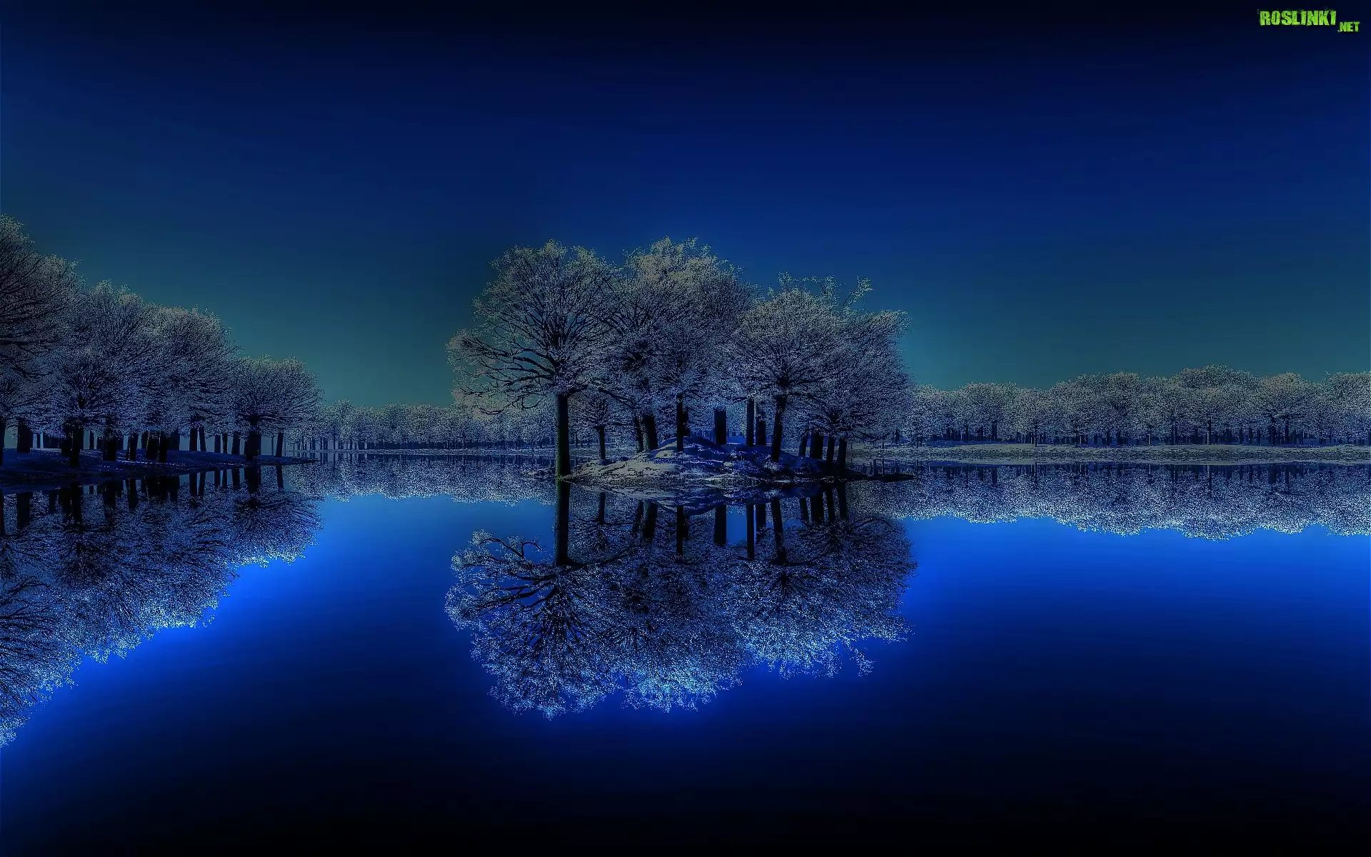 Odbicie, Drzew, Jezioro, Noc