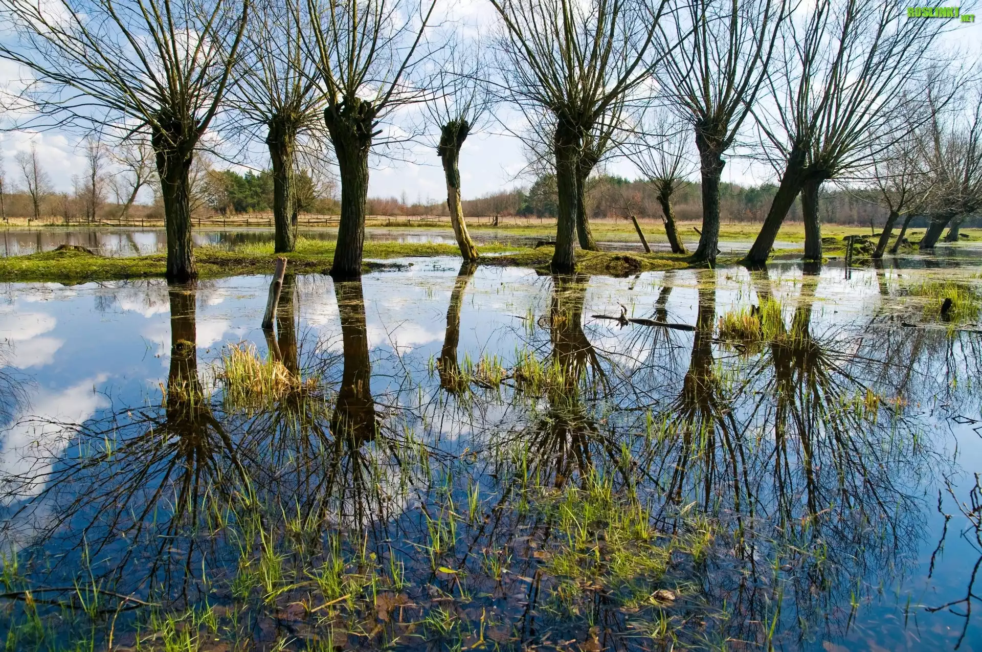 Rośliny: Wierzby, Odbicie, Rozlewisko