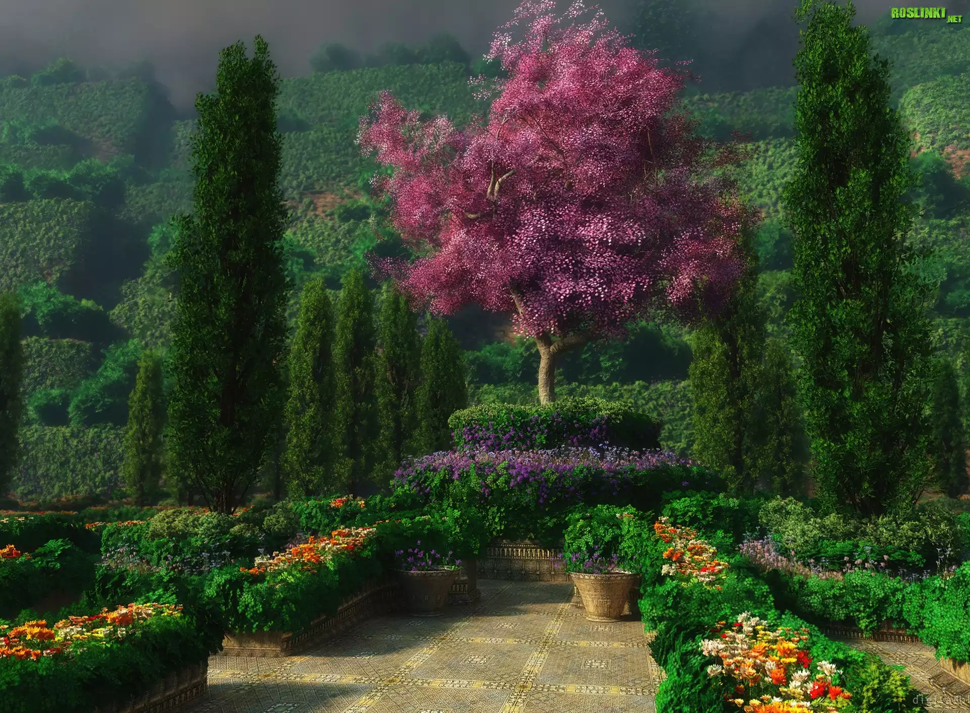 Rośliny: Ogród, Kwiaty, Bordowe, Drzewo