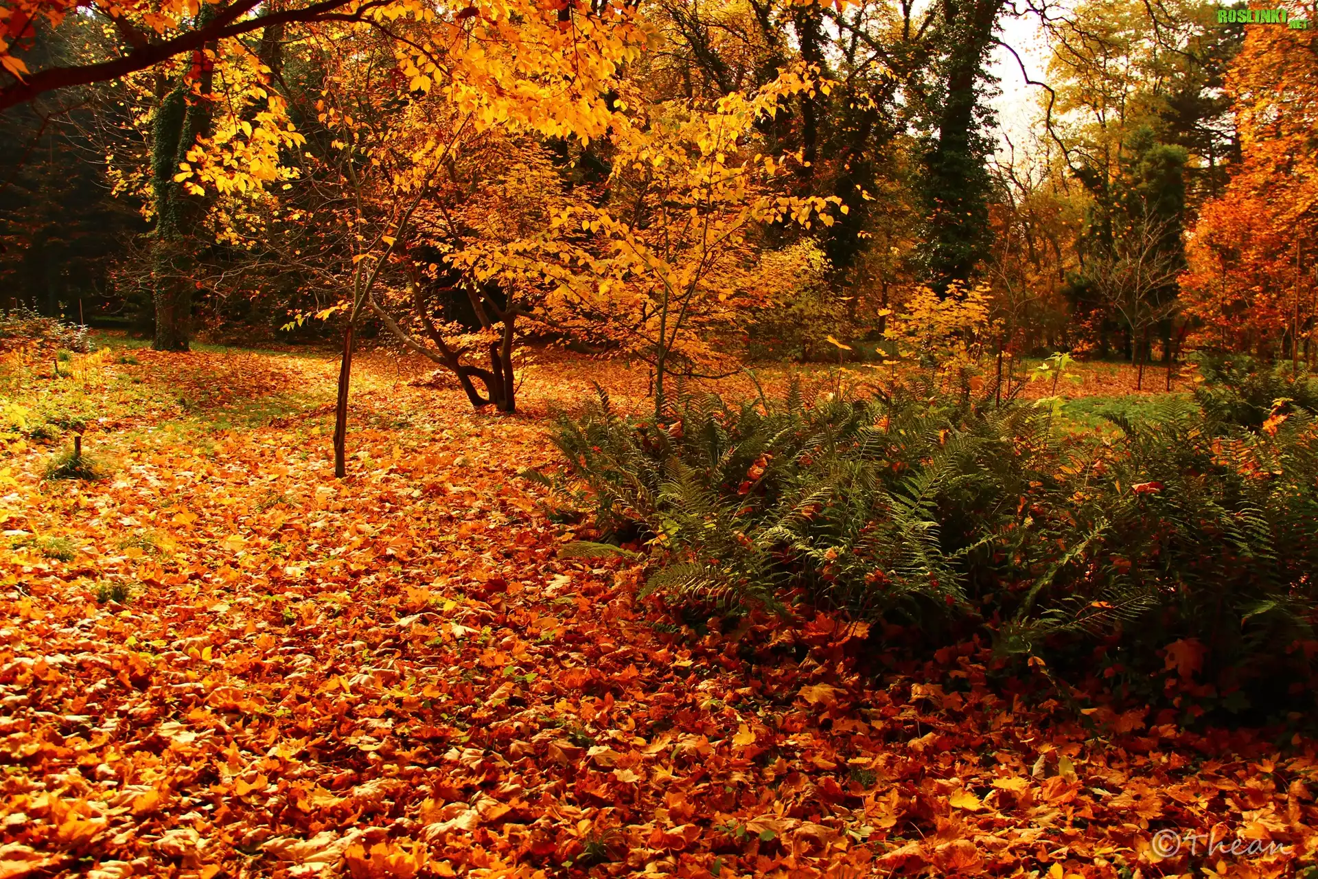 Rośliny: Ogród, Drzewa, Liście, Jesień, Paprocie
