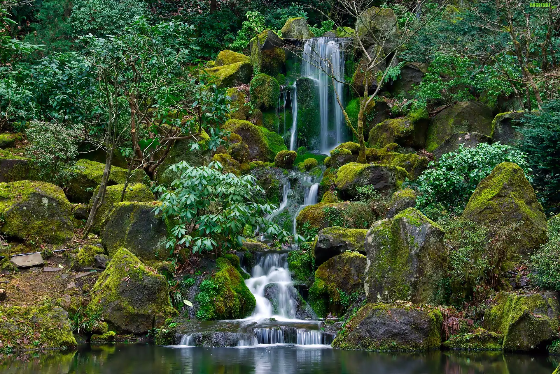 Rośliny: Ogród, Japoński, Portland, Oregon, Wodospad