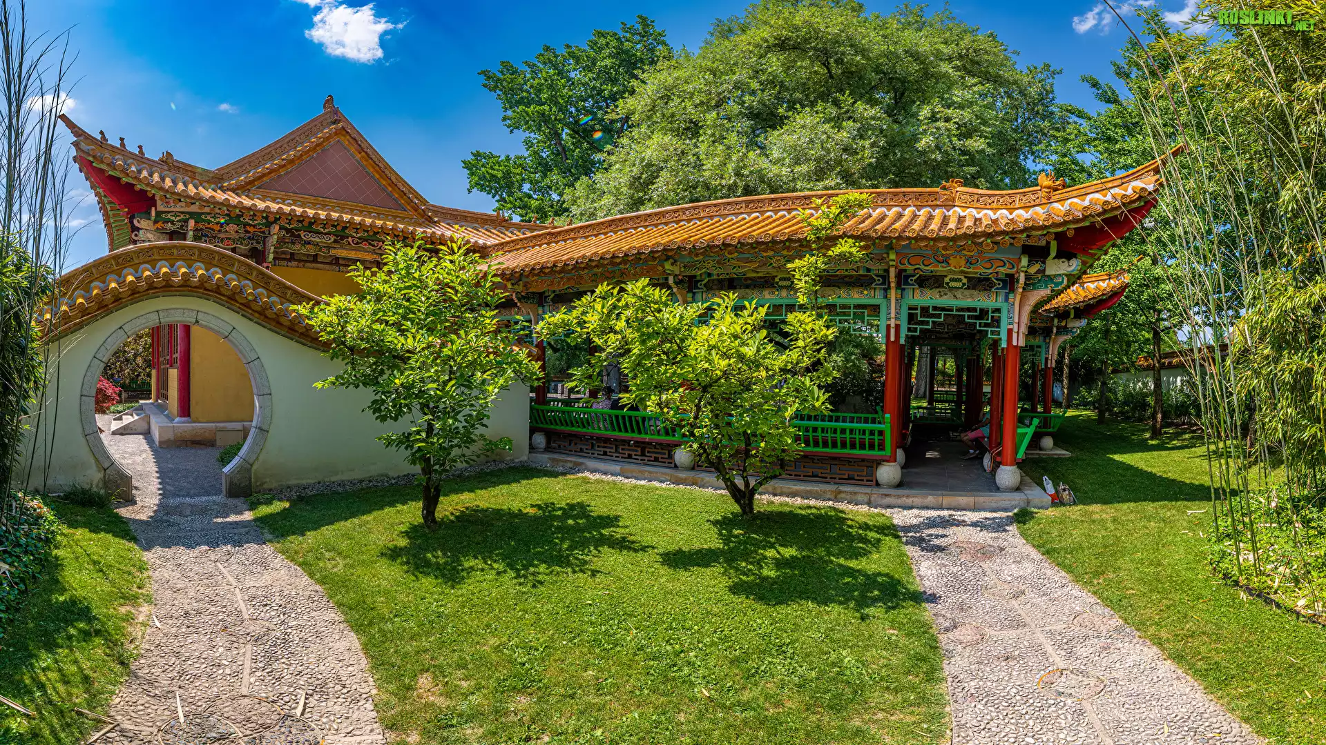 Rośliny: Dom, Zadaszony, Taras, Ogród, Drzewa, Ścieżki