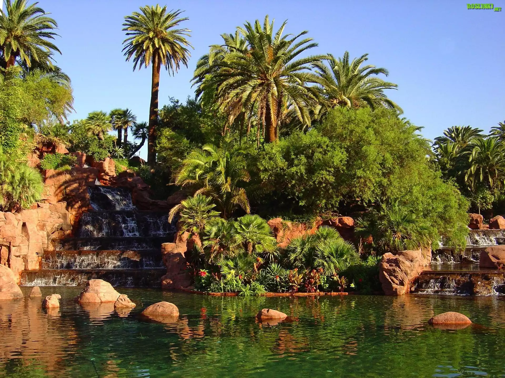 Rośliny: Ogród, Kaskady, Staw, Palmy
